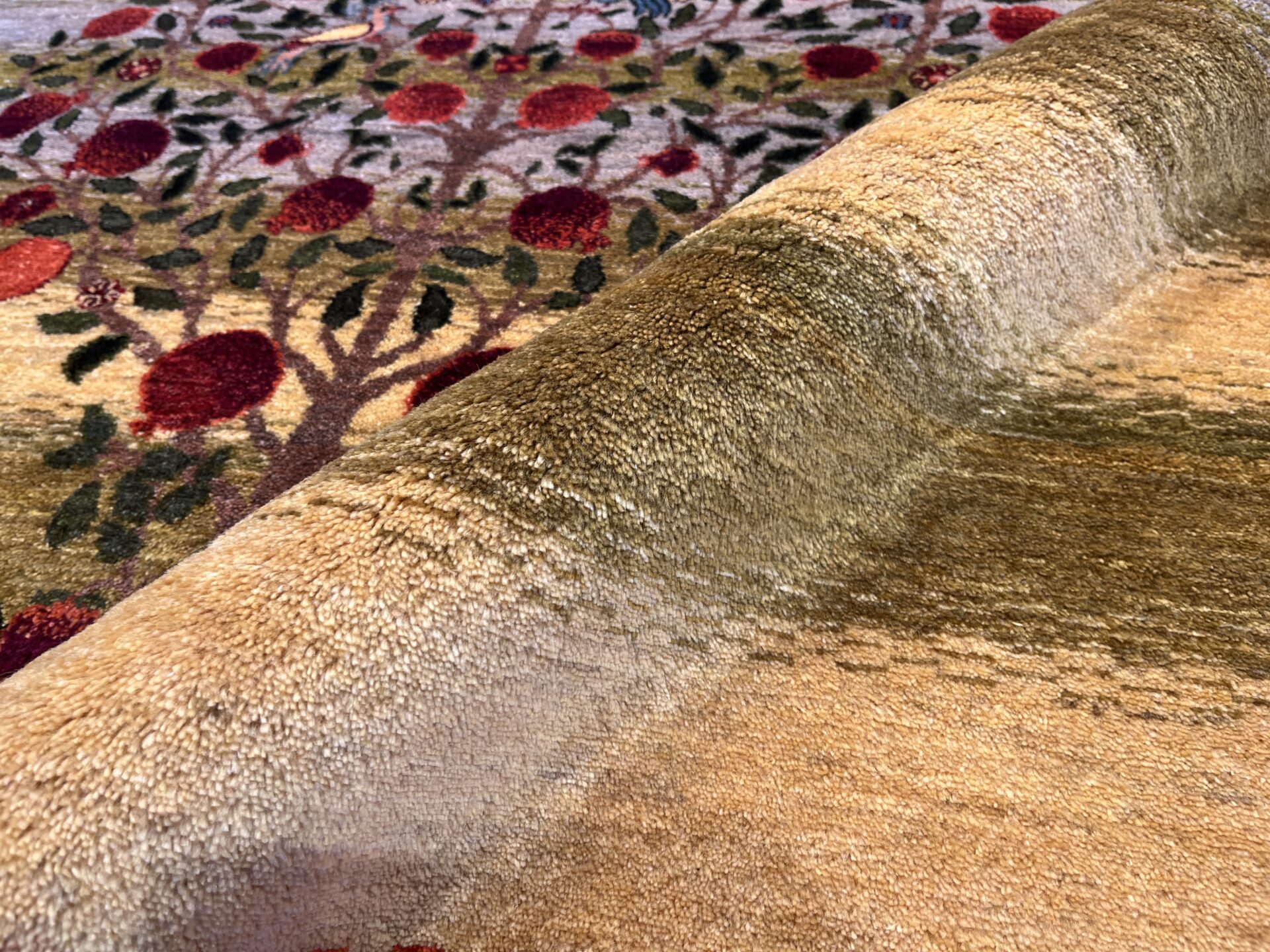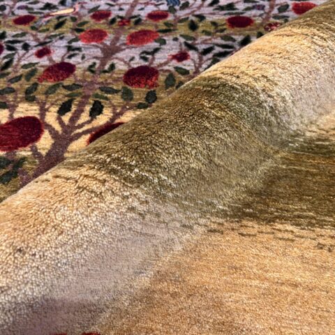 ルリバフ・ギャッベはゾランヴァリ社で最も高い、ペルシャ絨毯並みの織り密度を誇り、芸術性の高さで世界的に評価されています。細い糸で丁寧に織り上げられ、模様の表現はまさに絵画のよう。時間をかけて織られるため生産数が少なく、「ルリバフ ギャッベ」は希少価値の高いプレミアムランクです。