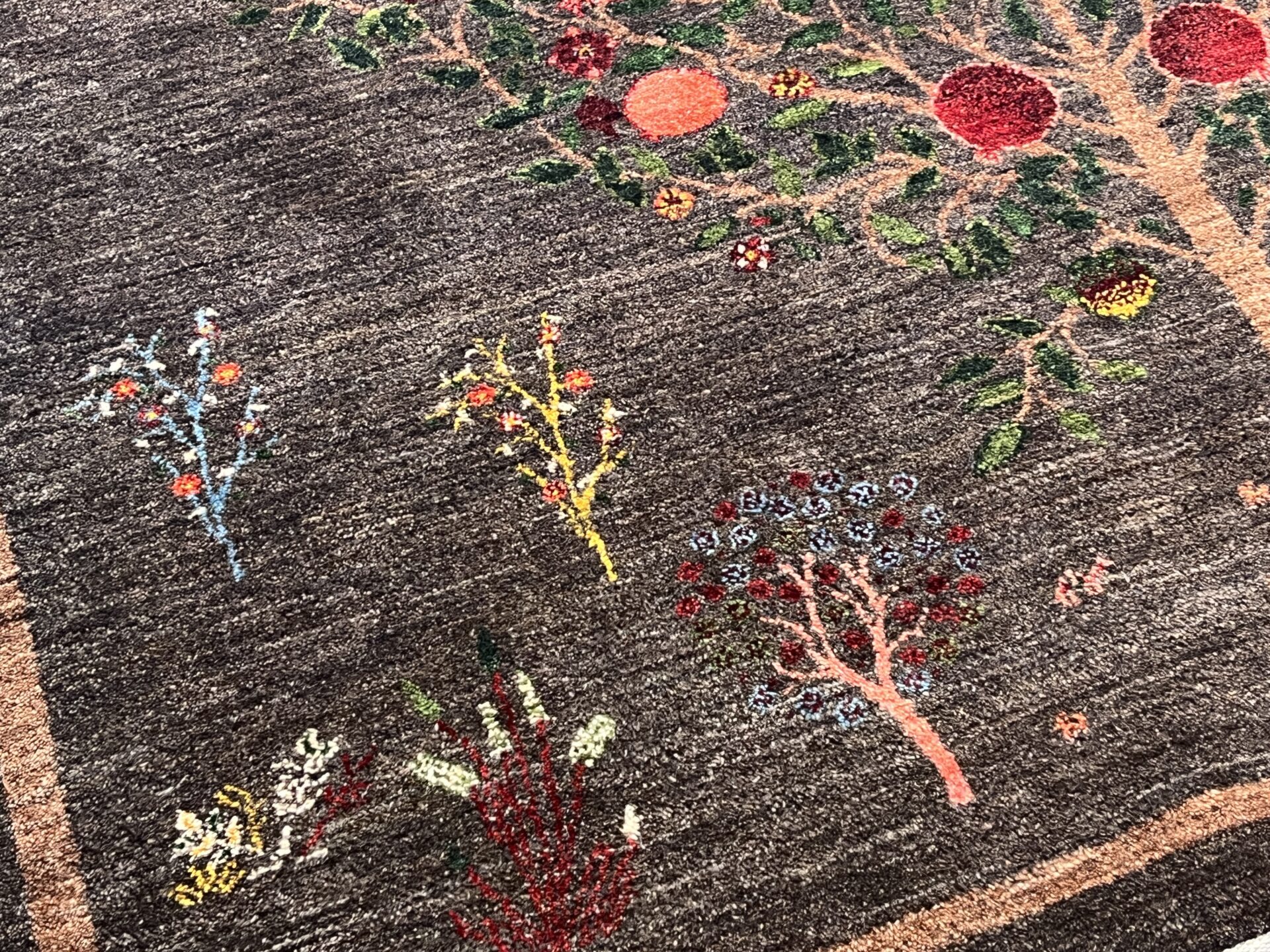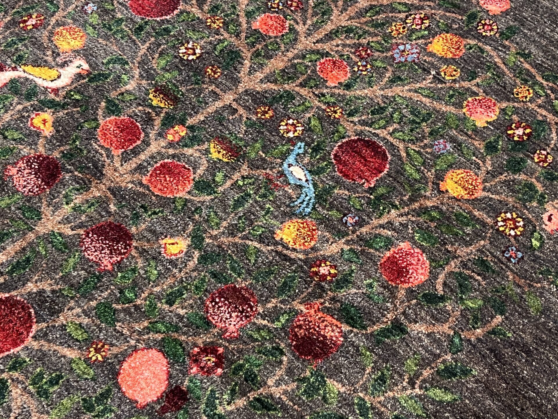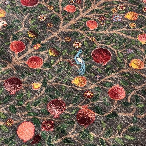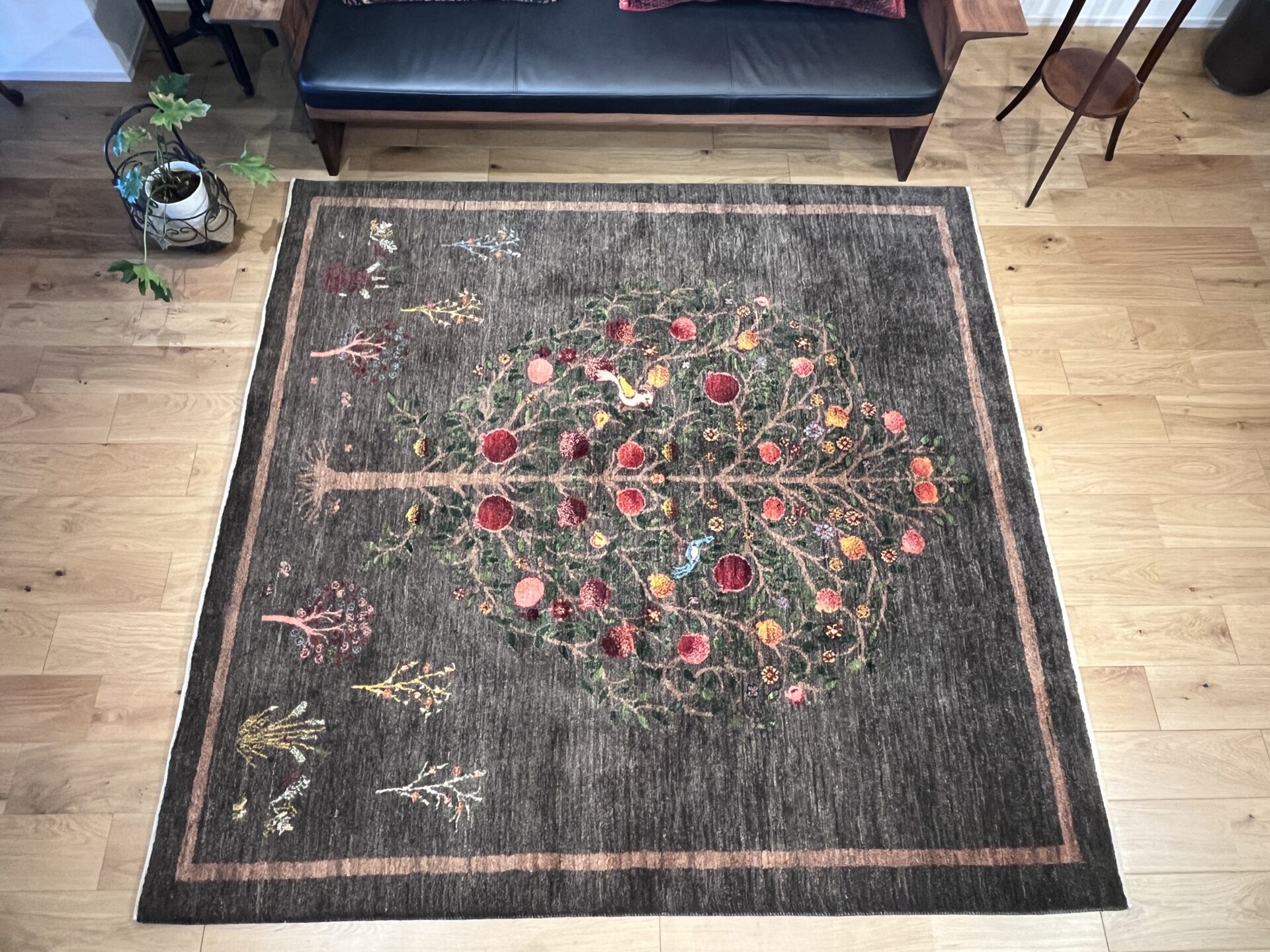 迫力のある、ほぼ正方形のルリバフギャッベ。人気のザクロ柄です。
