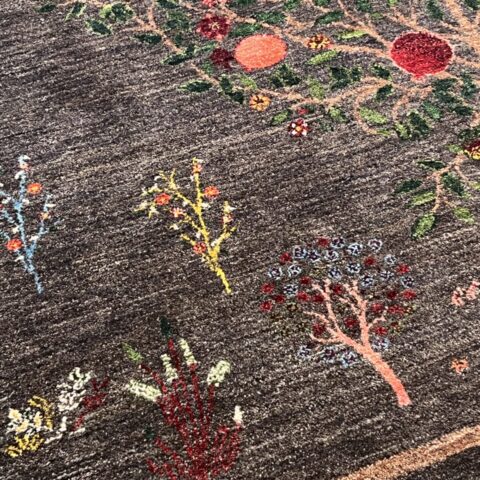 ルリバフ・ギャッベはゾランヴァリ社で最も高い、ペルシャ絨毯並みの織り密度を誇り、芸術性の高さで世界的に評価されています。細い糸で丁寧に織り上げられ、模様の表現はまさに絵画のよう。時間をかけて織られるため生産数が少なく、「ルリバフ ギャッベ」は希少価値の高いプレミアムランクです。