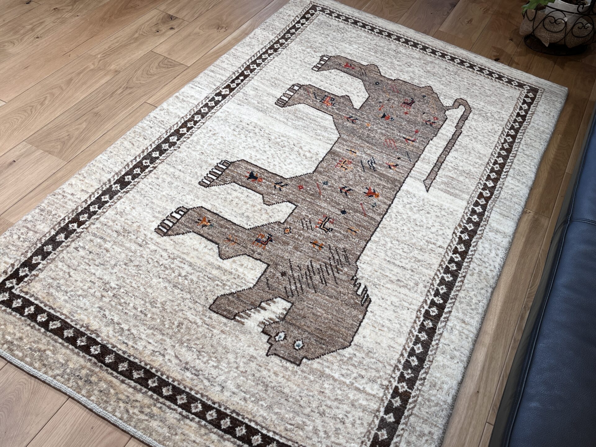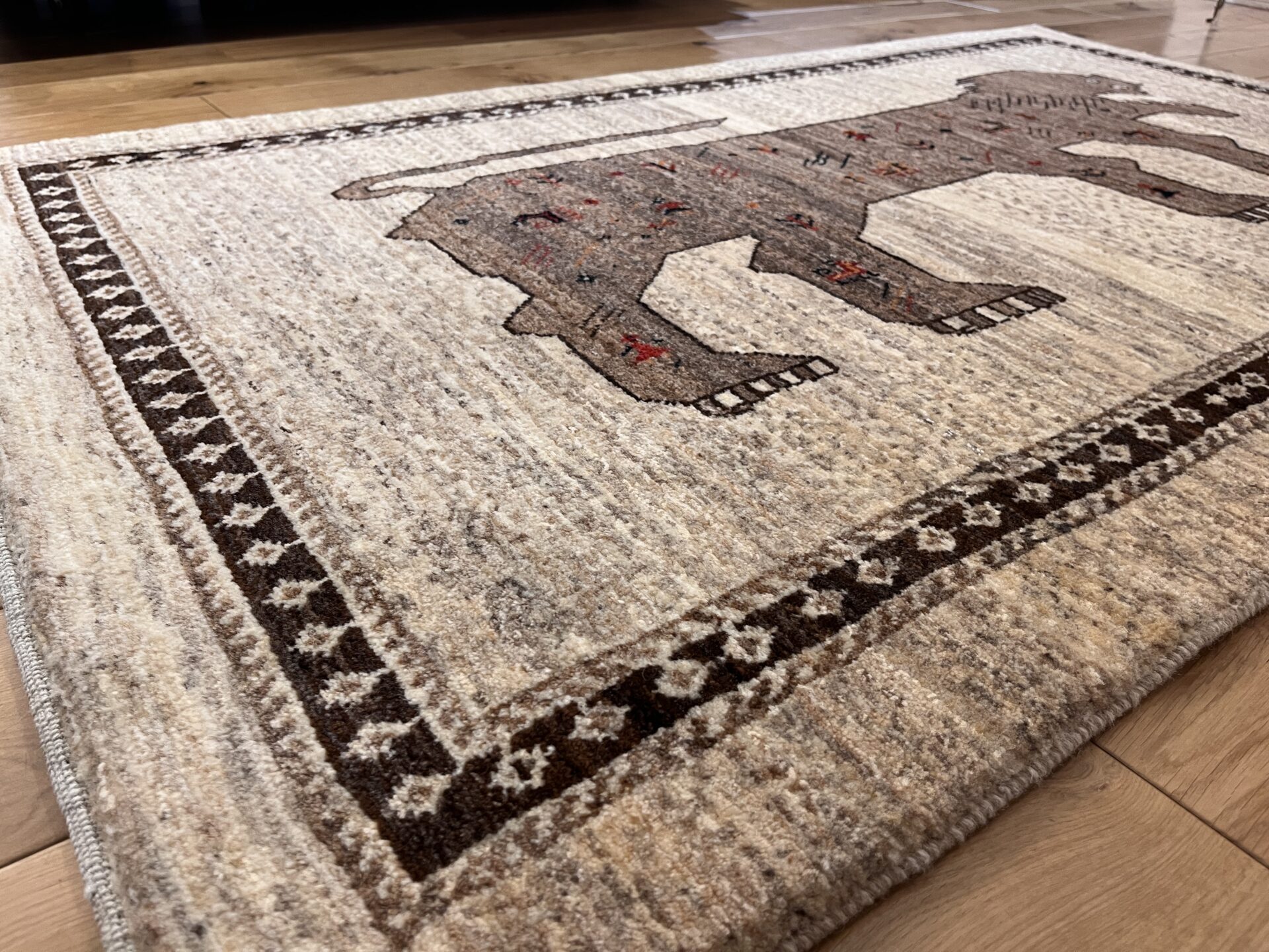 アマレ・ギャッベはゾランヴァリ社の代表的なシリーズで、しっかりとした打ち込みとコシの強い織りが特徴です。素朴で温かみのあるデザインが多く、日常使いしやすい耐久性の高さも人気の理由です。