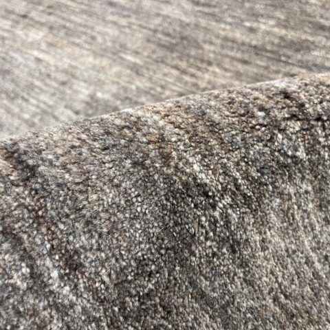 羊の原毛そのままの生成りを生かし、グレーからブラウンへと穏やかに移りゆくグラデーションが美しい一枚。