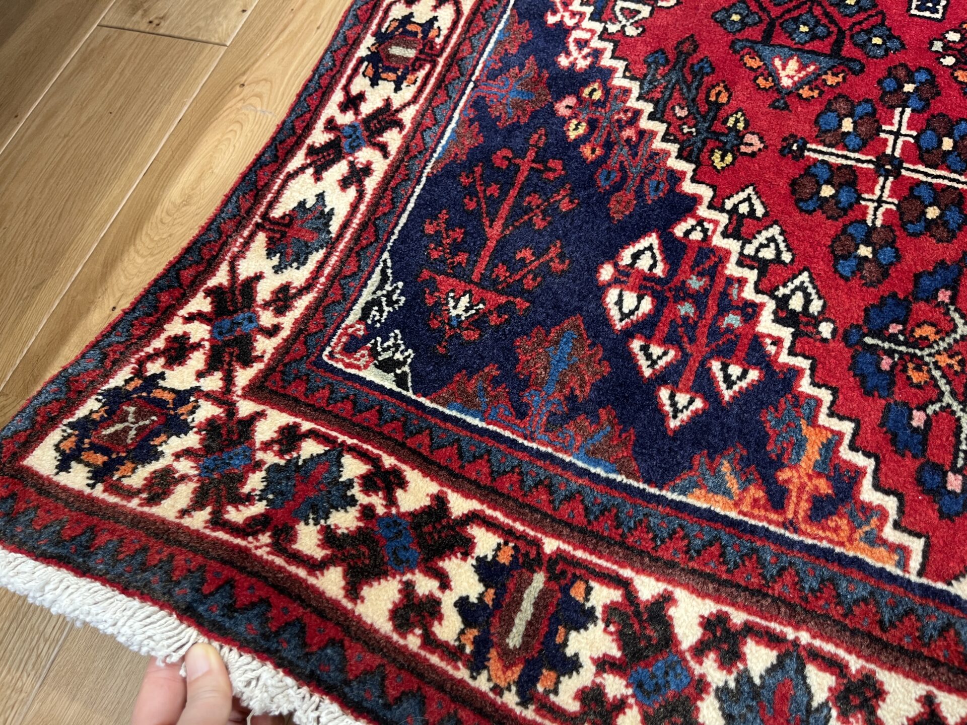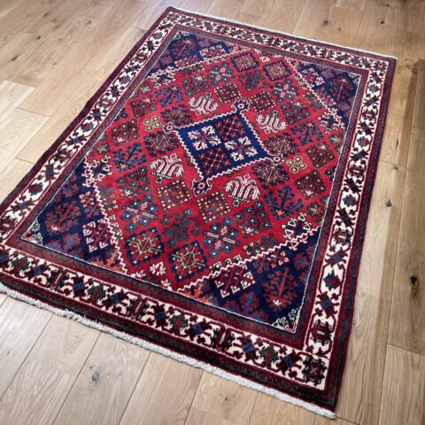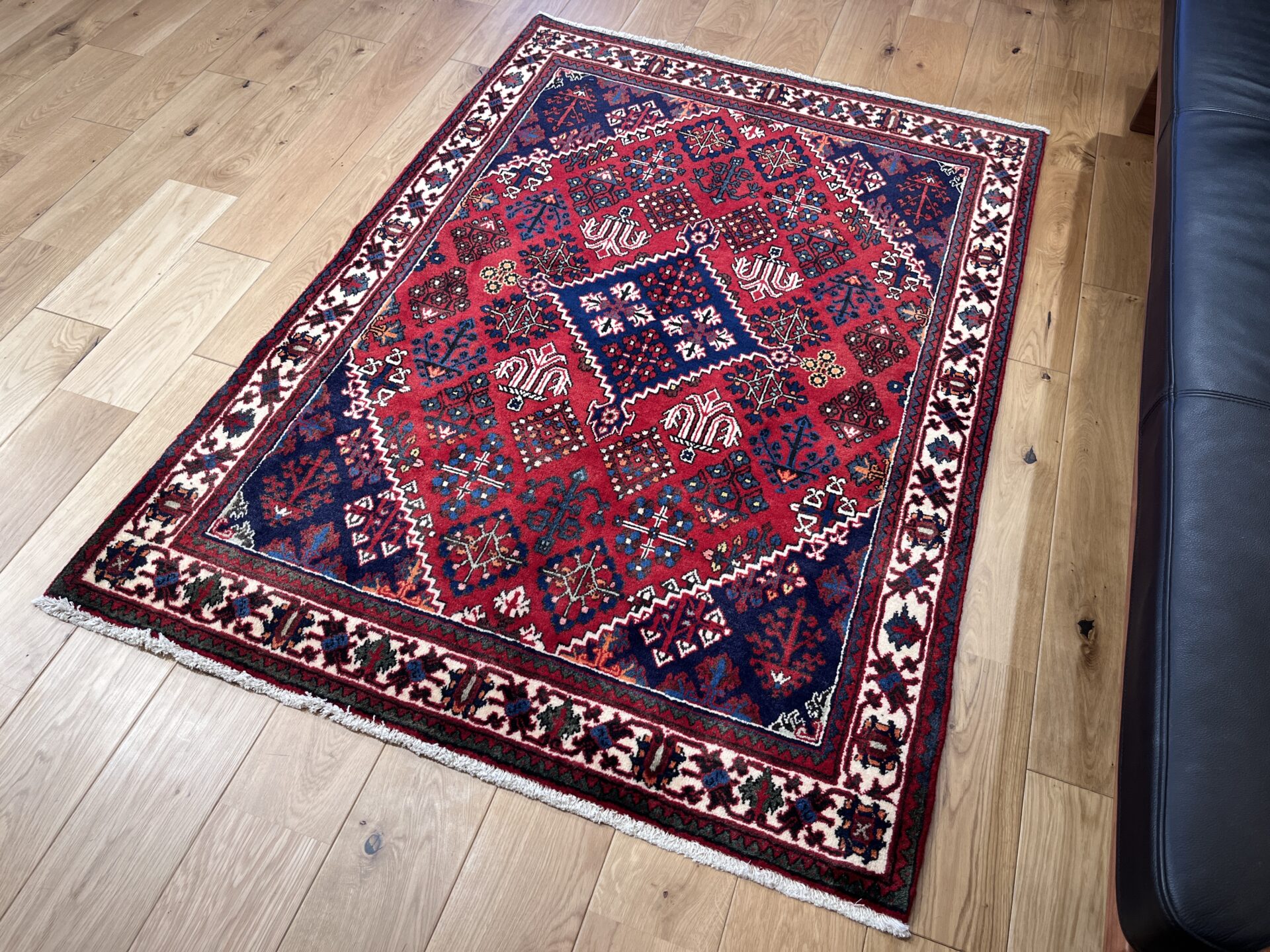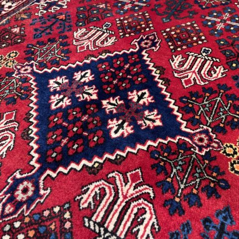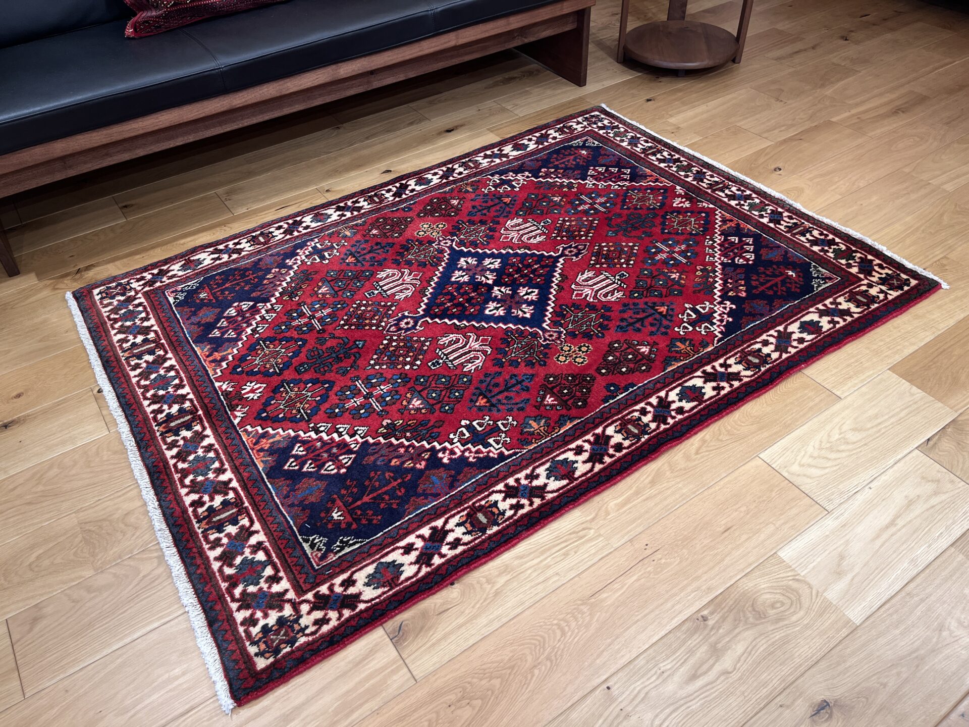 この地域はサファヴィー朝期(16〜17世紀)には織物産地として名声を得たとされ、現在もメイメらしい幾何学文様と上質な織りの伝統が受け継がれています。