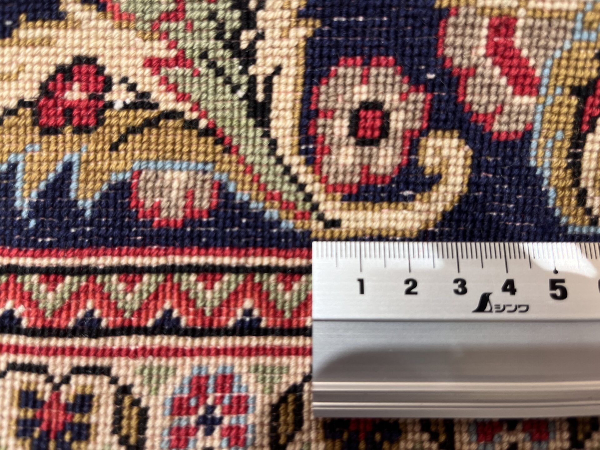 綿のたて糸にウールのパイルを合わせ、花びらの重なりまで表現した繊細な意匠が魅力です。