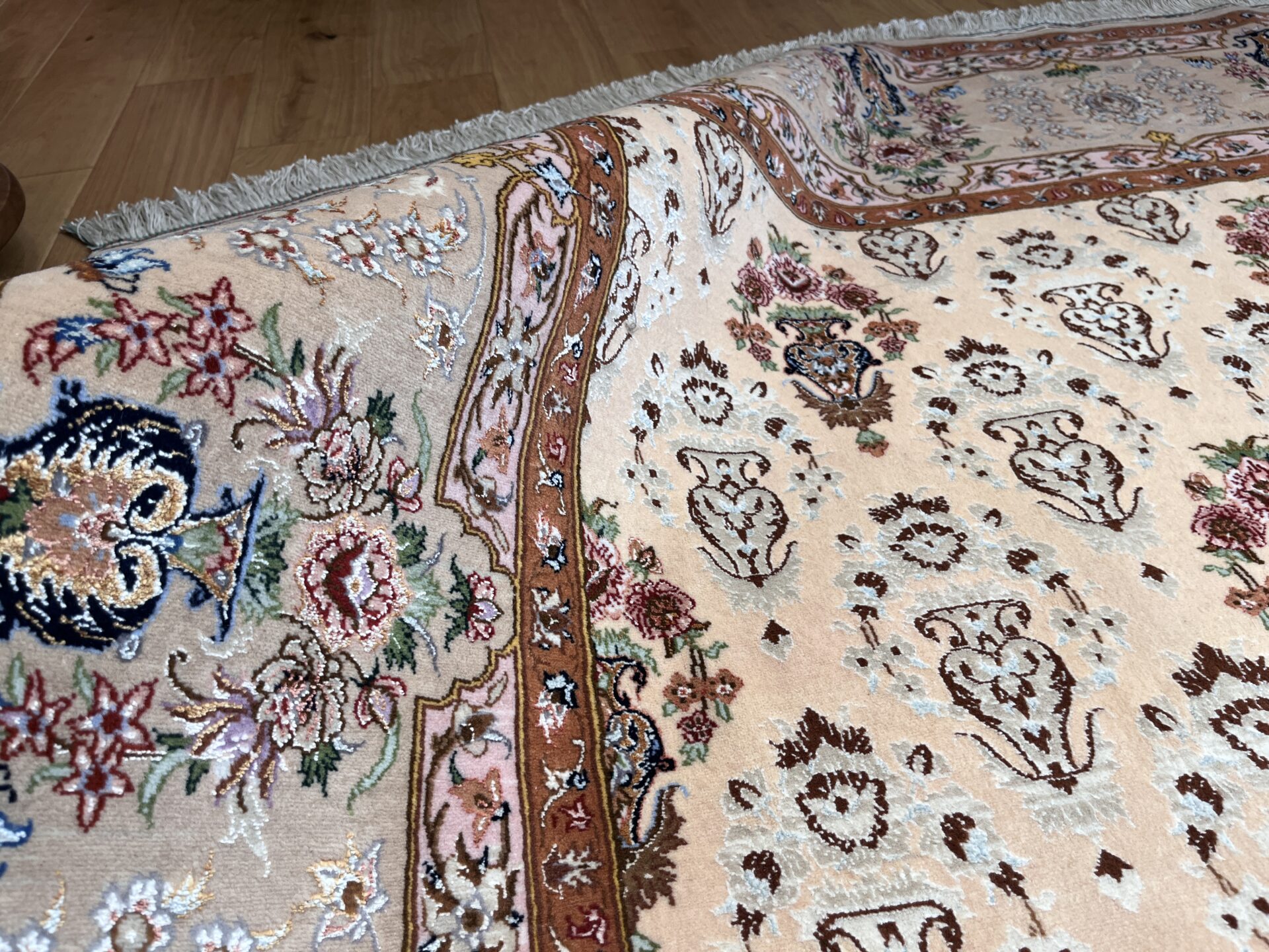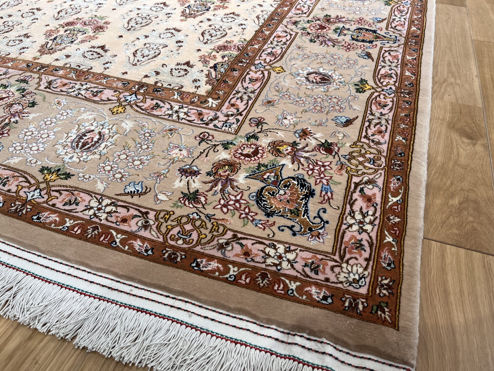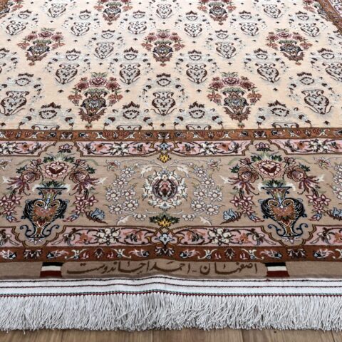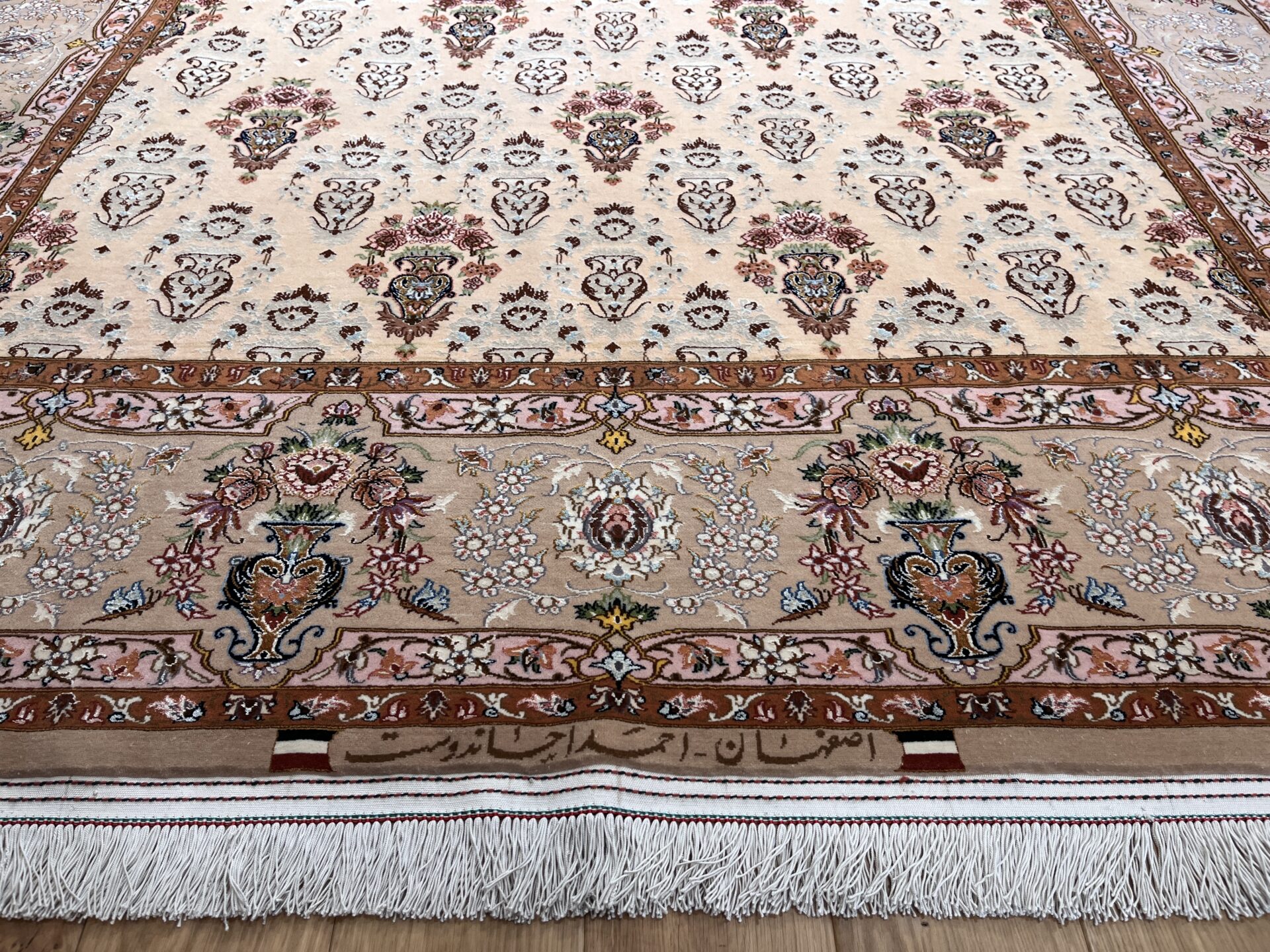 縦糸だけでなく意匠の随所にシルクが使われた、格別に華やかなエスファハン産ペルシャ絨毯です。