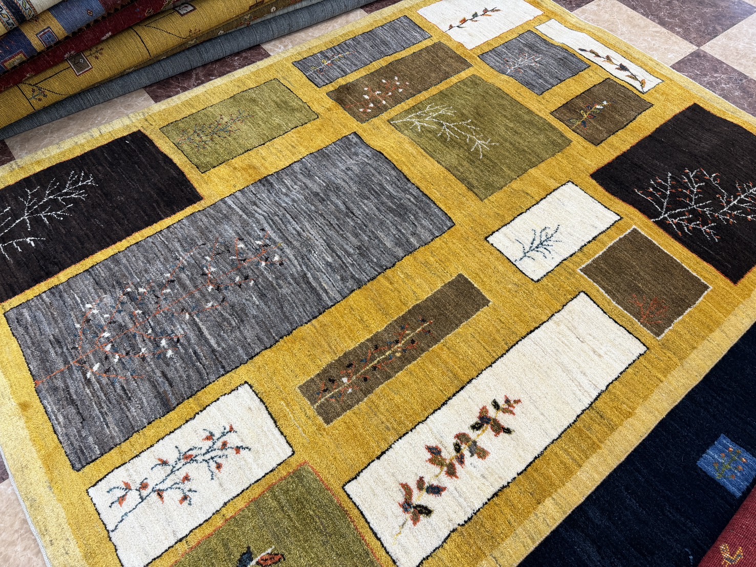 お母様とお嬢さまでご来場いただき、「お部屋が華やかになるね。」と205×145 ㎝ の上記のキラキラ光るお星さまのようなお花が咲いた「聖樹サエーナ」のギャッベを購入いただきました。
