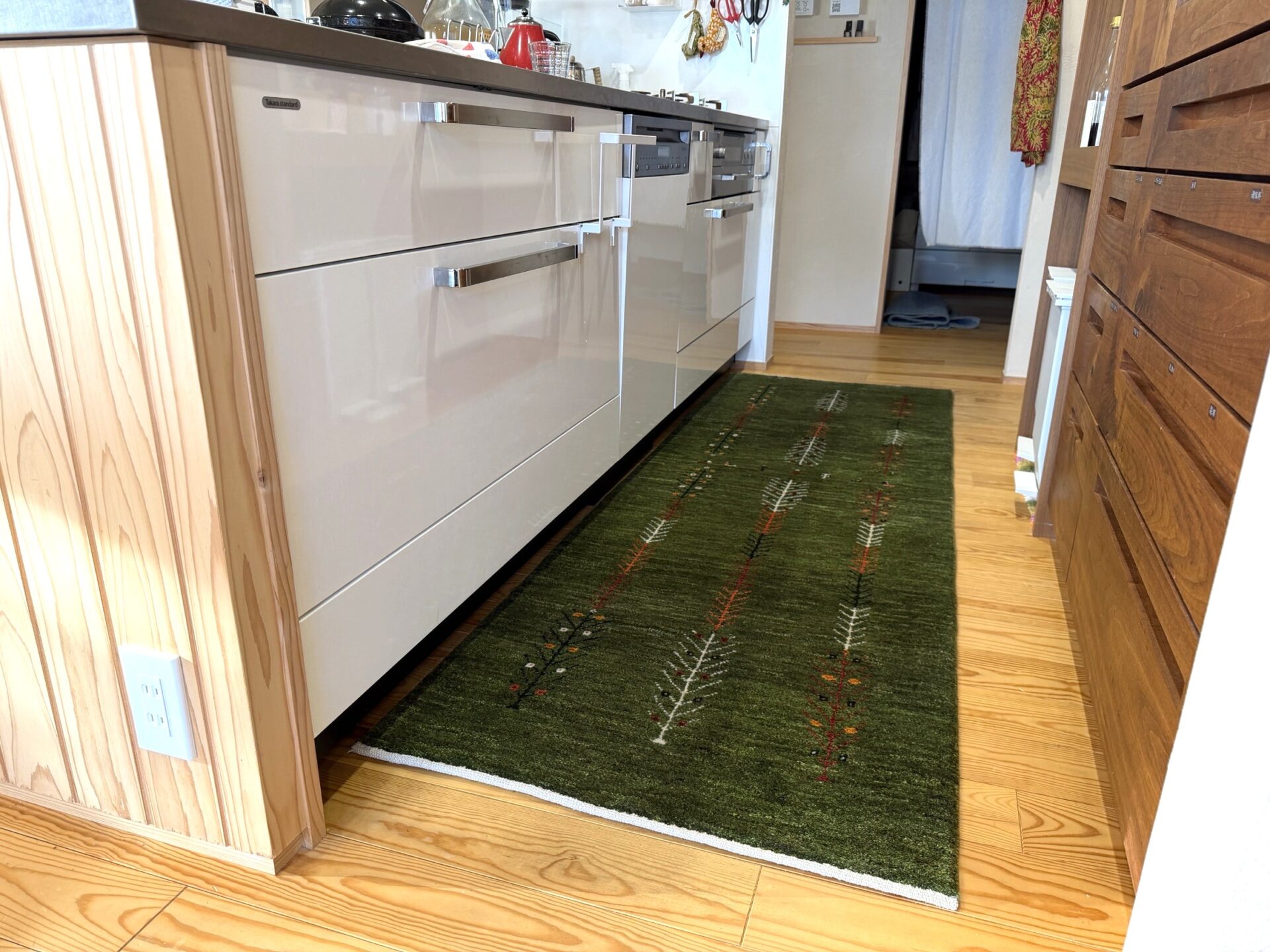 様々なギャッベをご覧いただいた上、キッチン用のロングサイズを試し敷きいただきました。