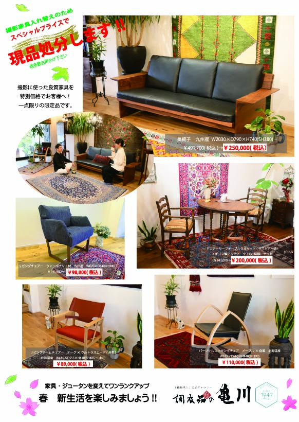調度品の亀川では春のギャッベ&ペルシャ絨毯展にあわせて、