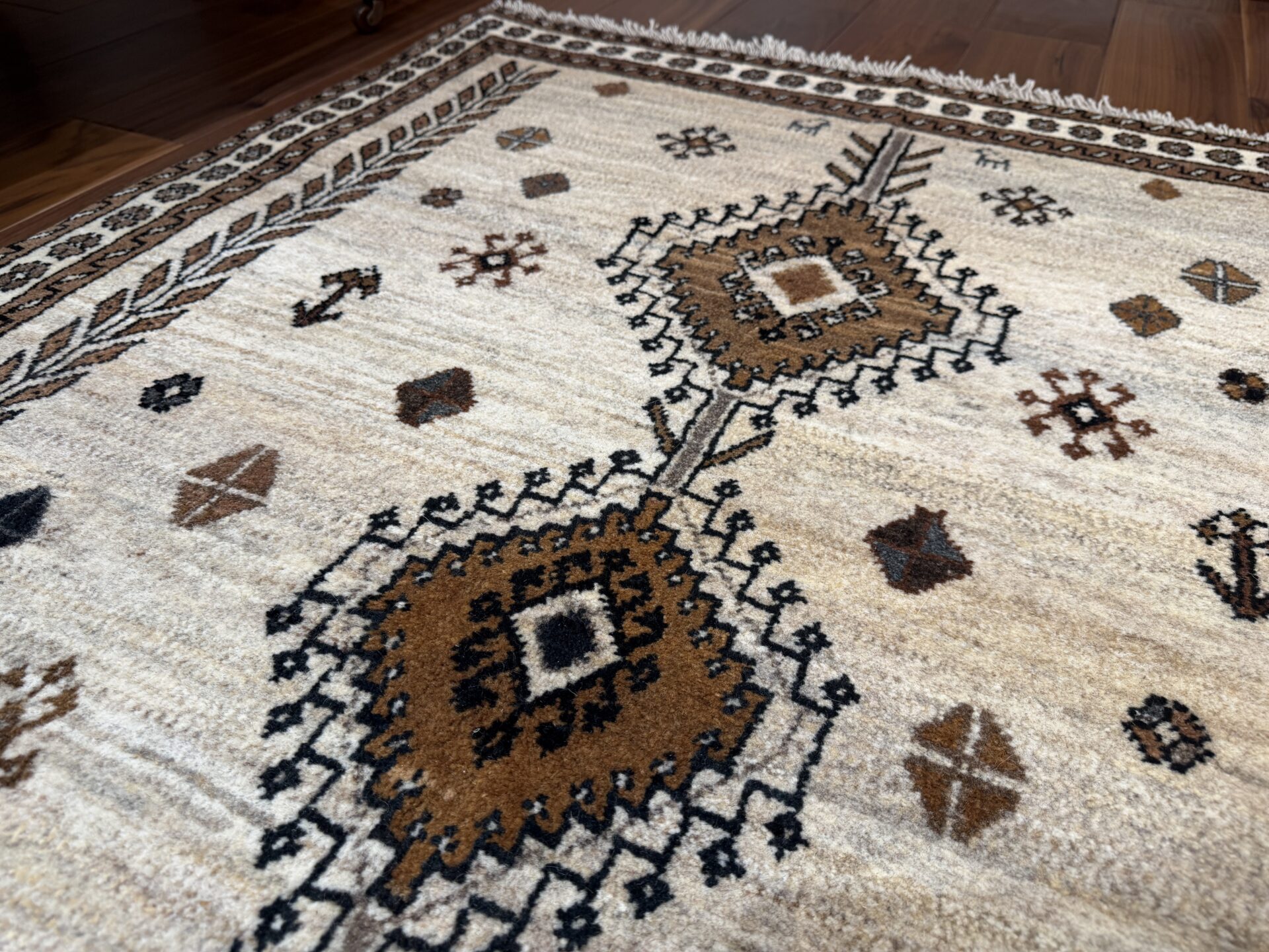 ゾランヴァリ・ギャッベの通販も亀川にお任せください。毛足の長さや織り密度など目に見えないところも我々自身が実際に触って品質を確かめ、本当にお客様にご紹介したいものだけ厳選しています。オンラインでの接客にも対応していますので、お気軽にお問い合わせください。