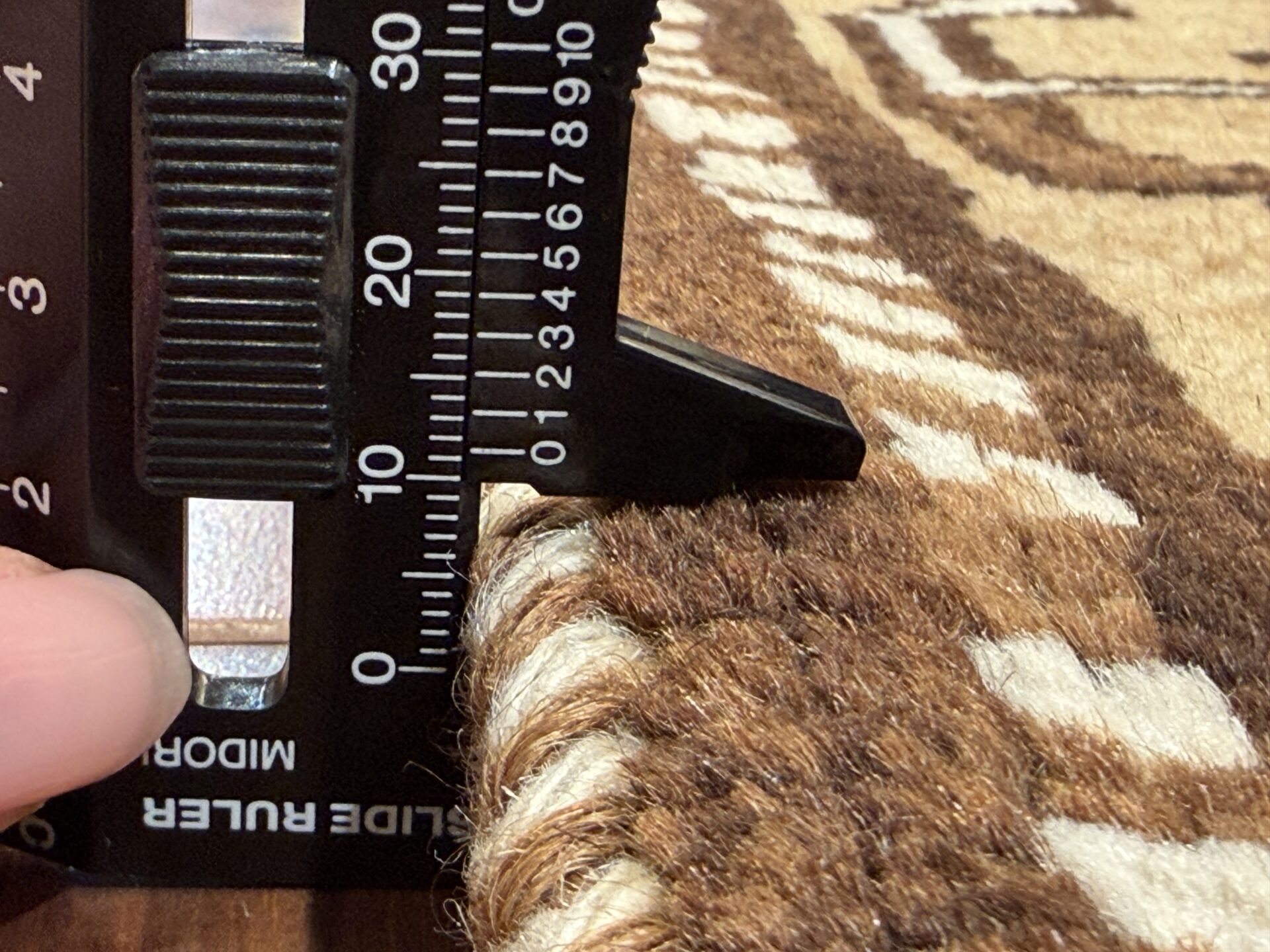 ひし形は「魔除け」、鹿は「家庭円満」を象徴しており、織り手の素朴で温かな願いがデザインから伝わってきます。195cmとゆったりしたサイズ感で、リビングに敷くだけで心がほっと落ち着くような安らぎの空間を演出してくれます。