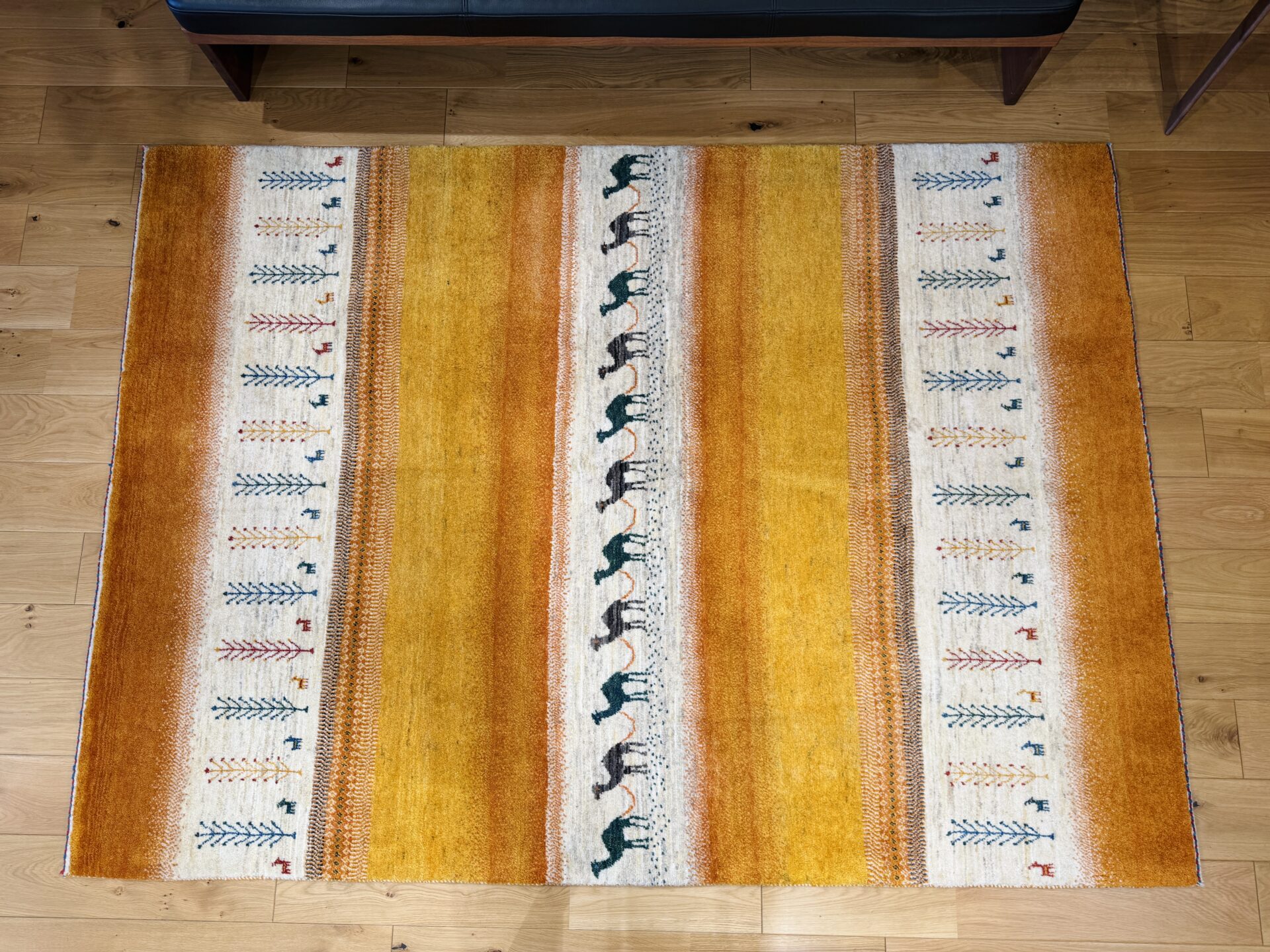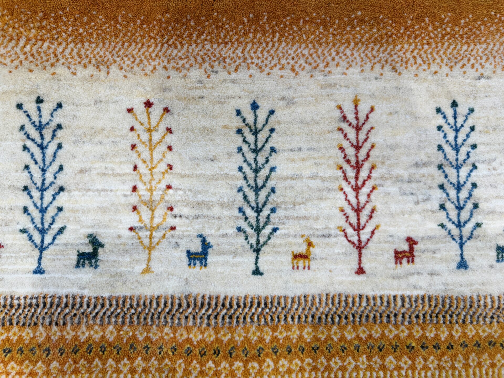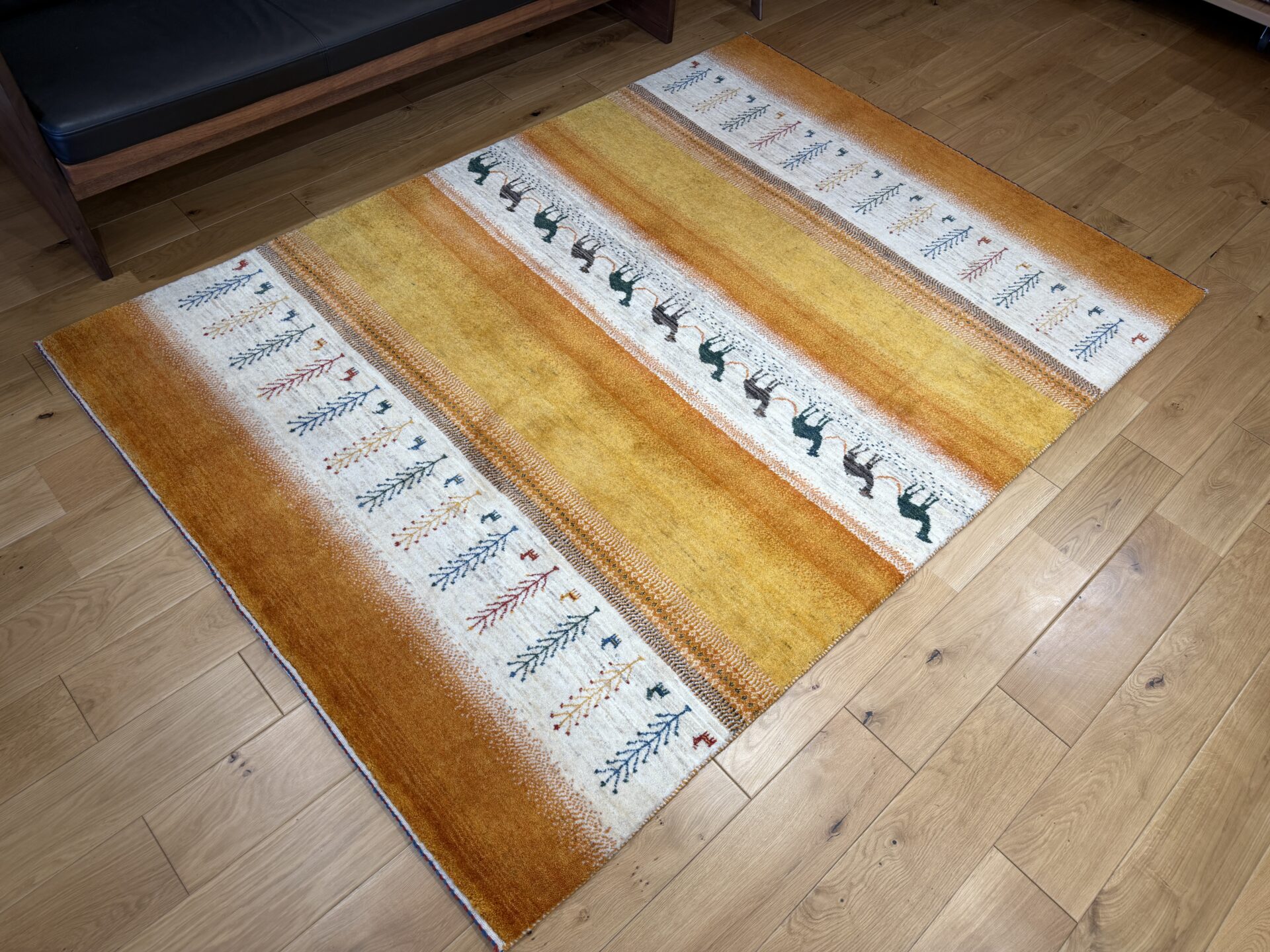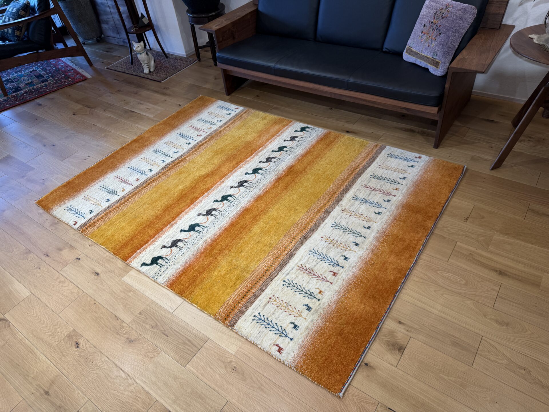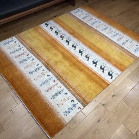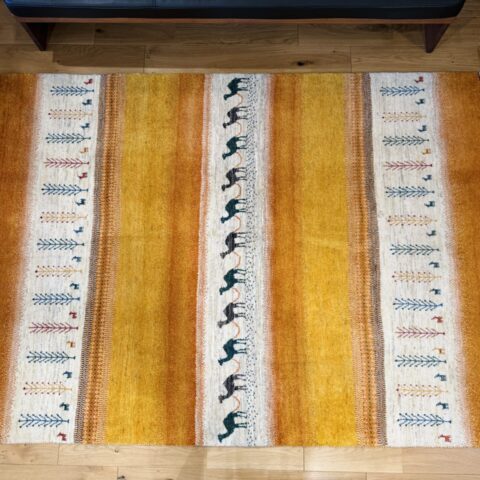 カシュクリ・ギャッベはアマレよりも細かな糸を使い、より緻密で滑らかな織りが特徴です。草木染めの色が美しく映え、模様の表現力も豊か。品質と軽やかさのバランスに優れ、使い心地と見た目の両方にこだわりたい方に最適な「カシュクリ ギャッベ」です。