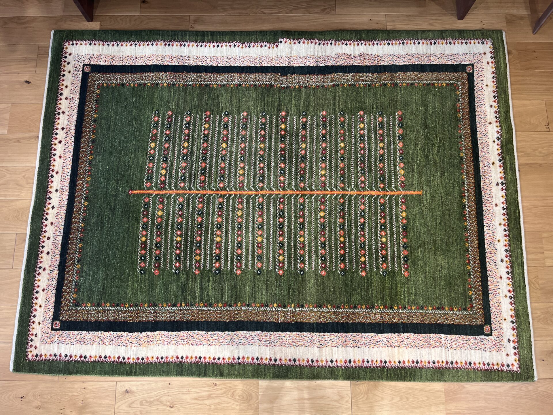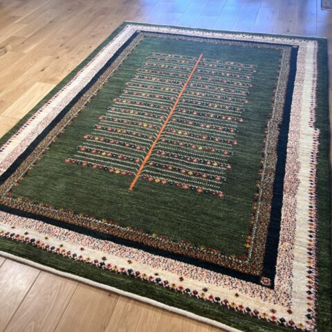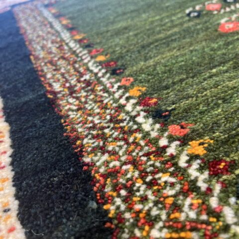 カシュクリ・ギャッベはアマレよりも細かな糸を使い、より緻密で滑らかな織りが特徴です。草木染めの色が美しく映え、模様の表現力も豊か。品質と軽やかさのバランスに優れ、使い心地と見た目の両方にこだわりたい方に最適な「カシュクリ ギャッベ」です。