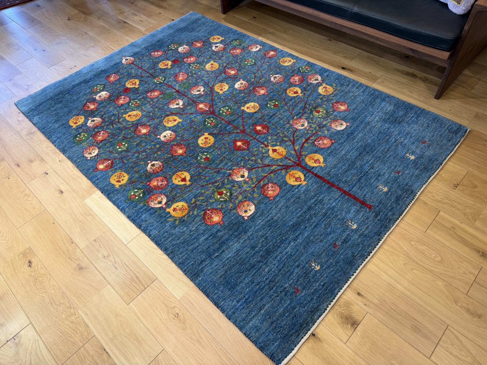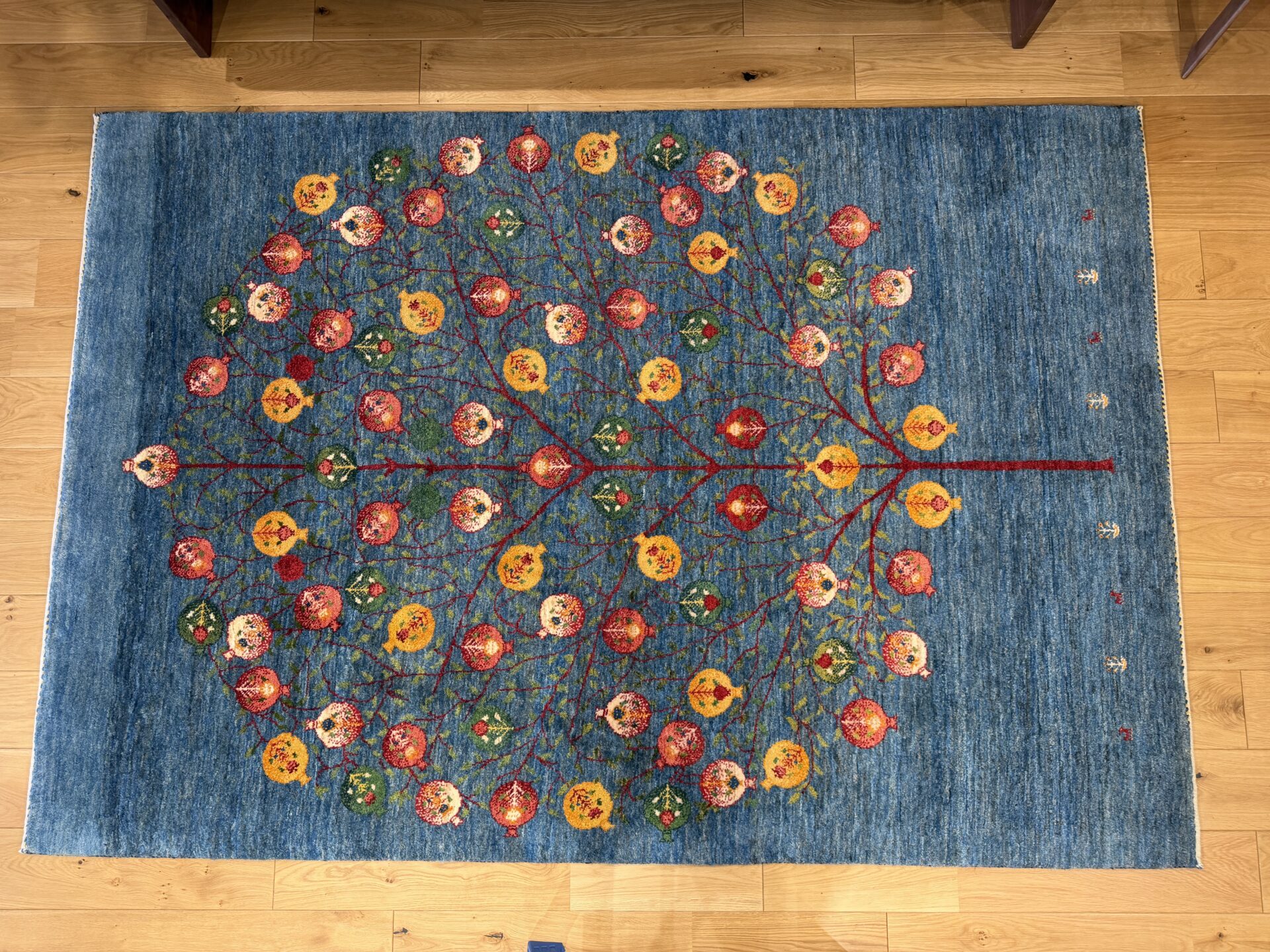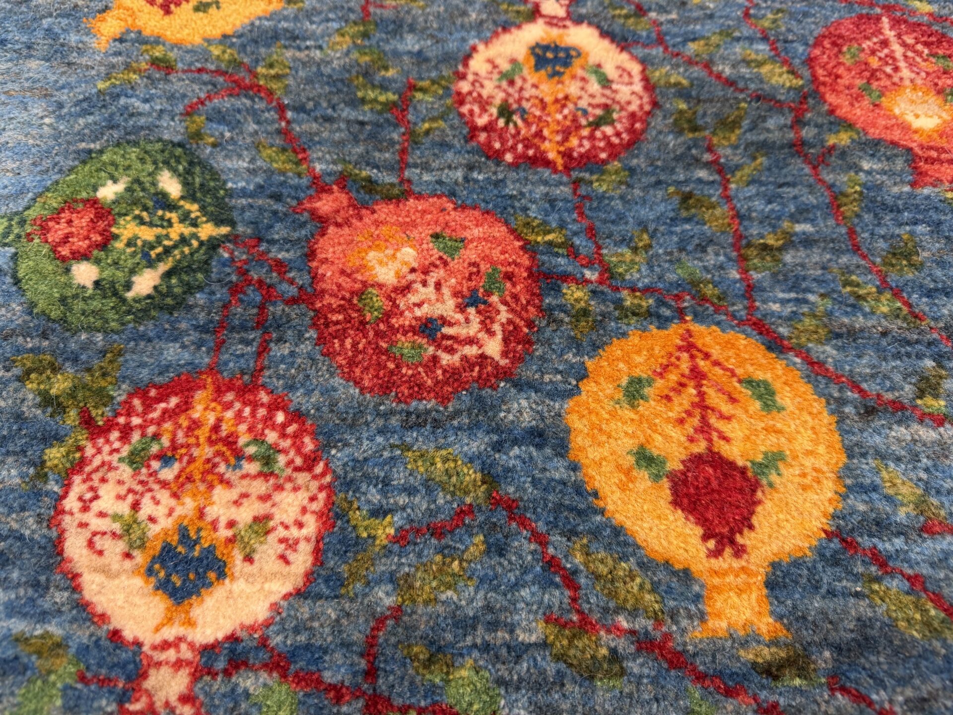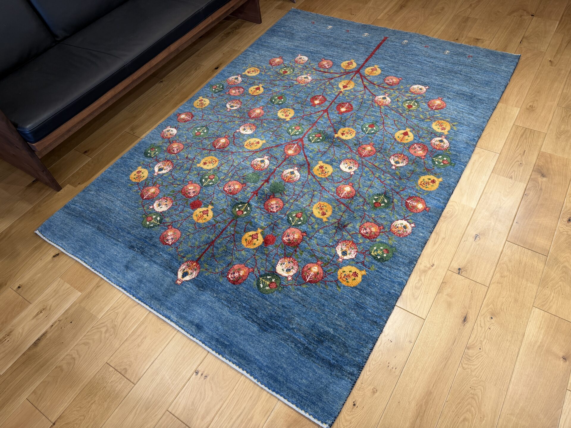 たわわに実るザクロは「生命の樹」と呼ばれ、子孫繁栄や家族の幸せを願う伝統的な文様として親しまれています。