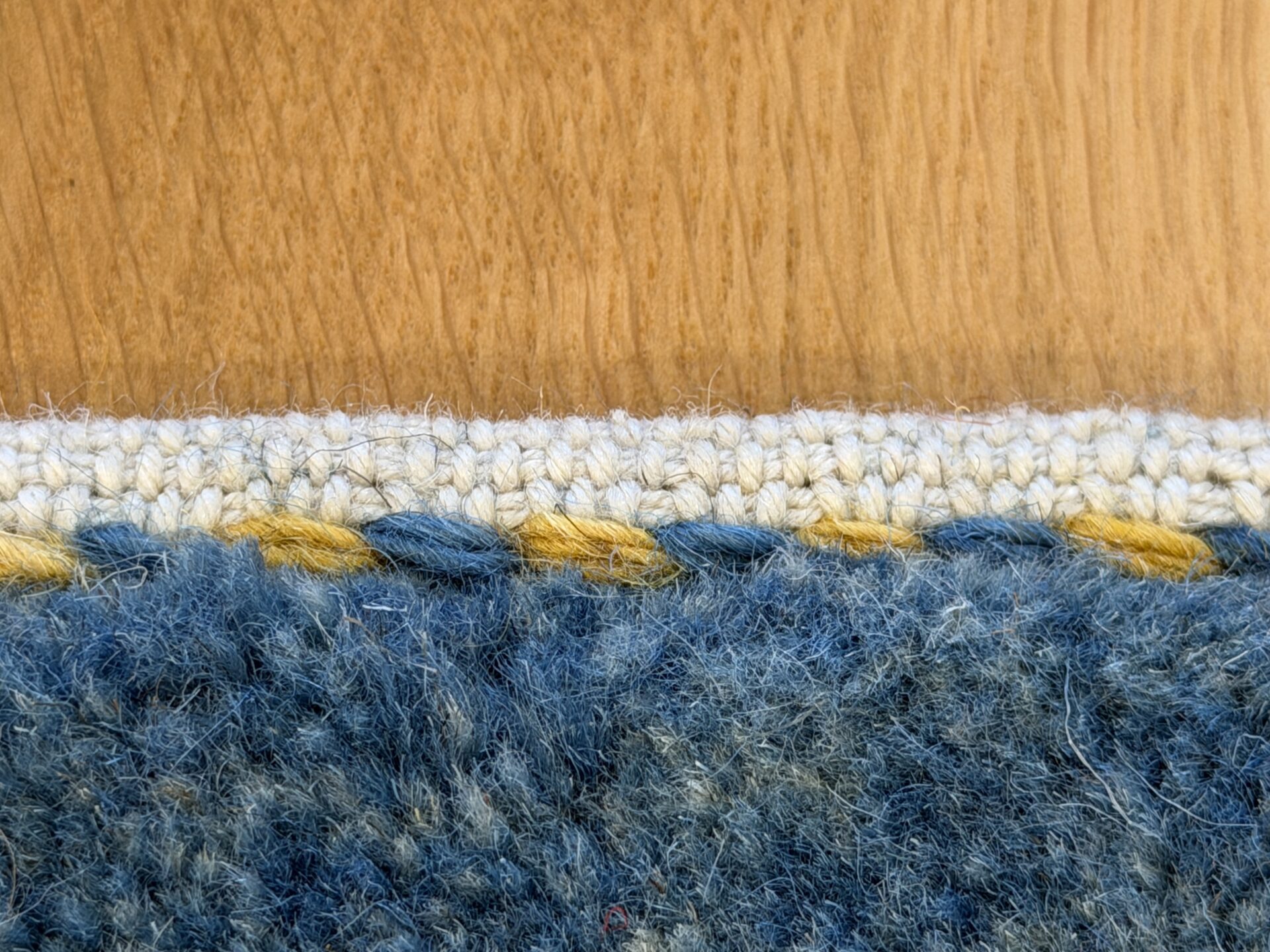 手仕事ならではの美しい青の濃淡(アブラッシュ)緻密な幾何学模様が織り込まれており、職人の高い技術とこだわりが細部にまで宿っています。