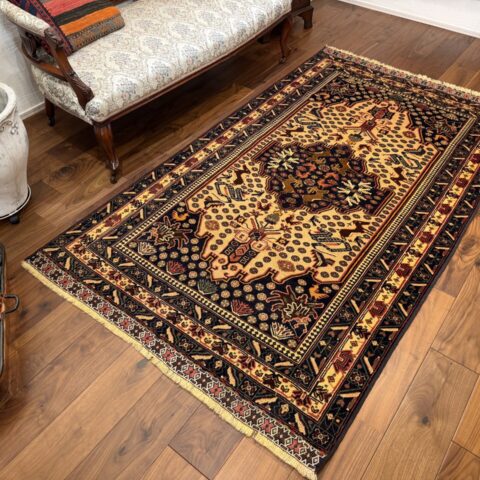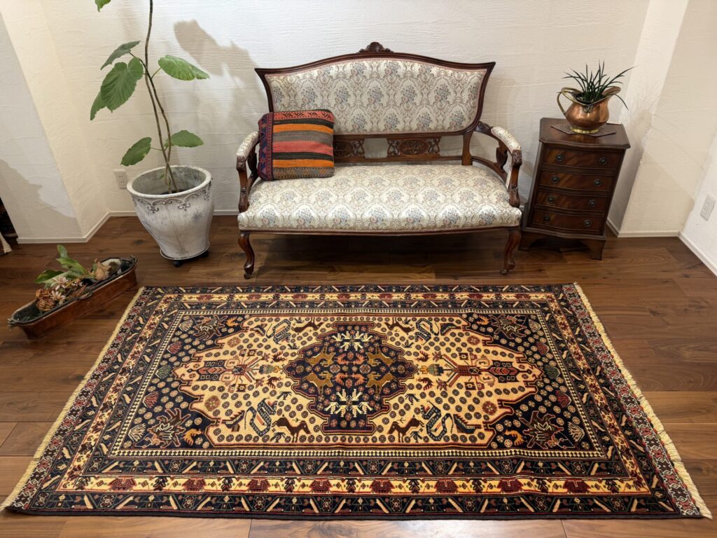 部族絨毯特有の深みのある色彩と豊かな物語性を備え、暮らしの中に落ち着いたアクセントを添えてくれる一品です。