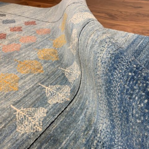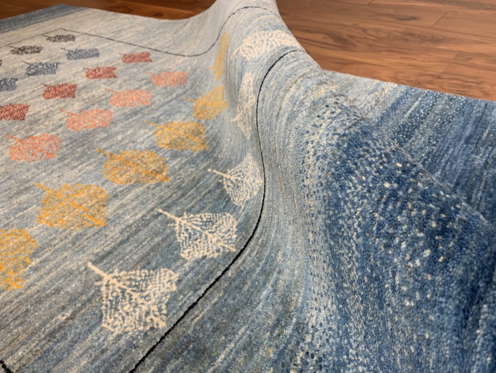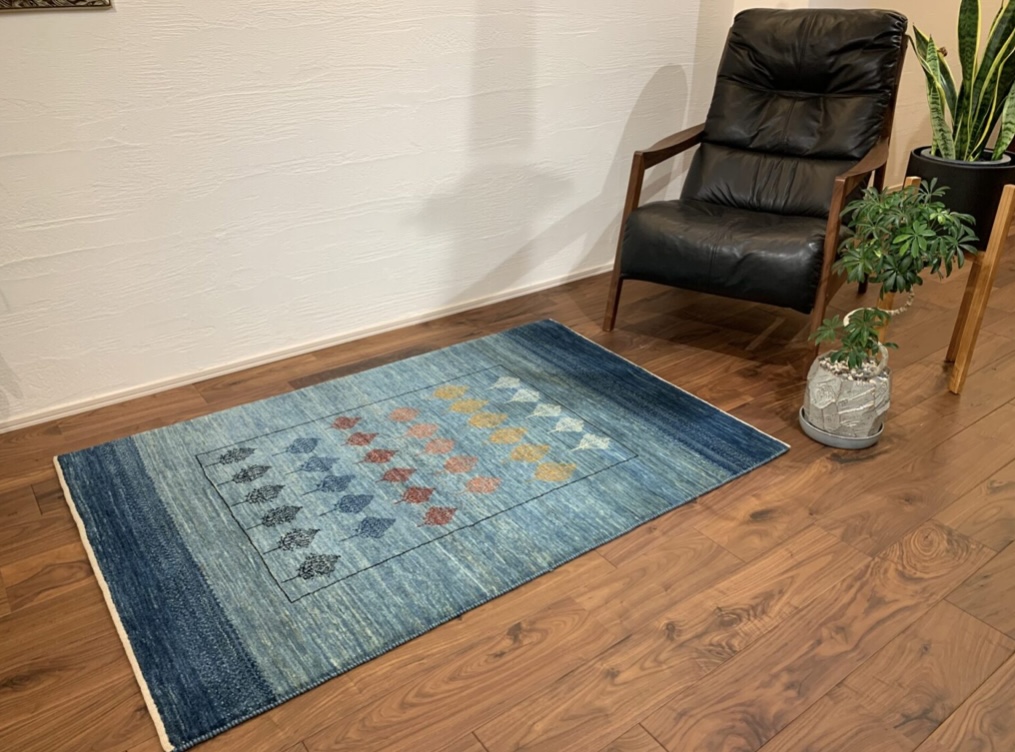 穏やかなブルーが美しいカシュクリギャッベです。ひとくくりにブルーといっても、この波のようなグラデ―ジョンは、