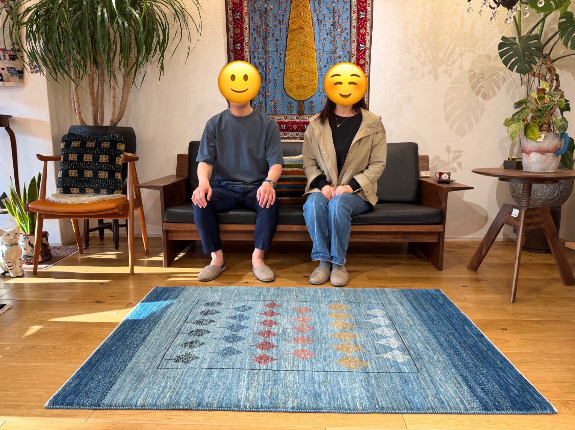 じっくり検討され、第一印象のお魚がモチーフのカシュクリギャッベに決定されました。紋様でお魚が登場するギャッベは珍しいです。