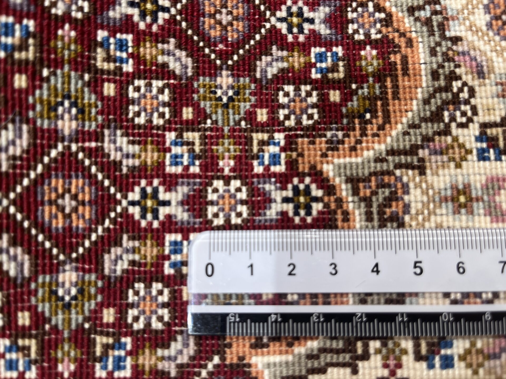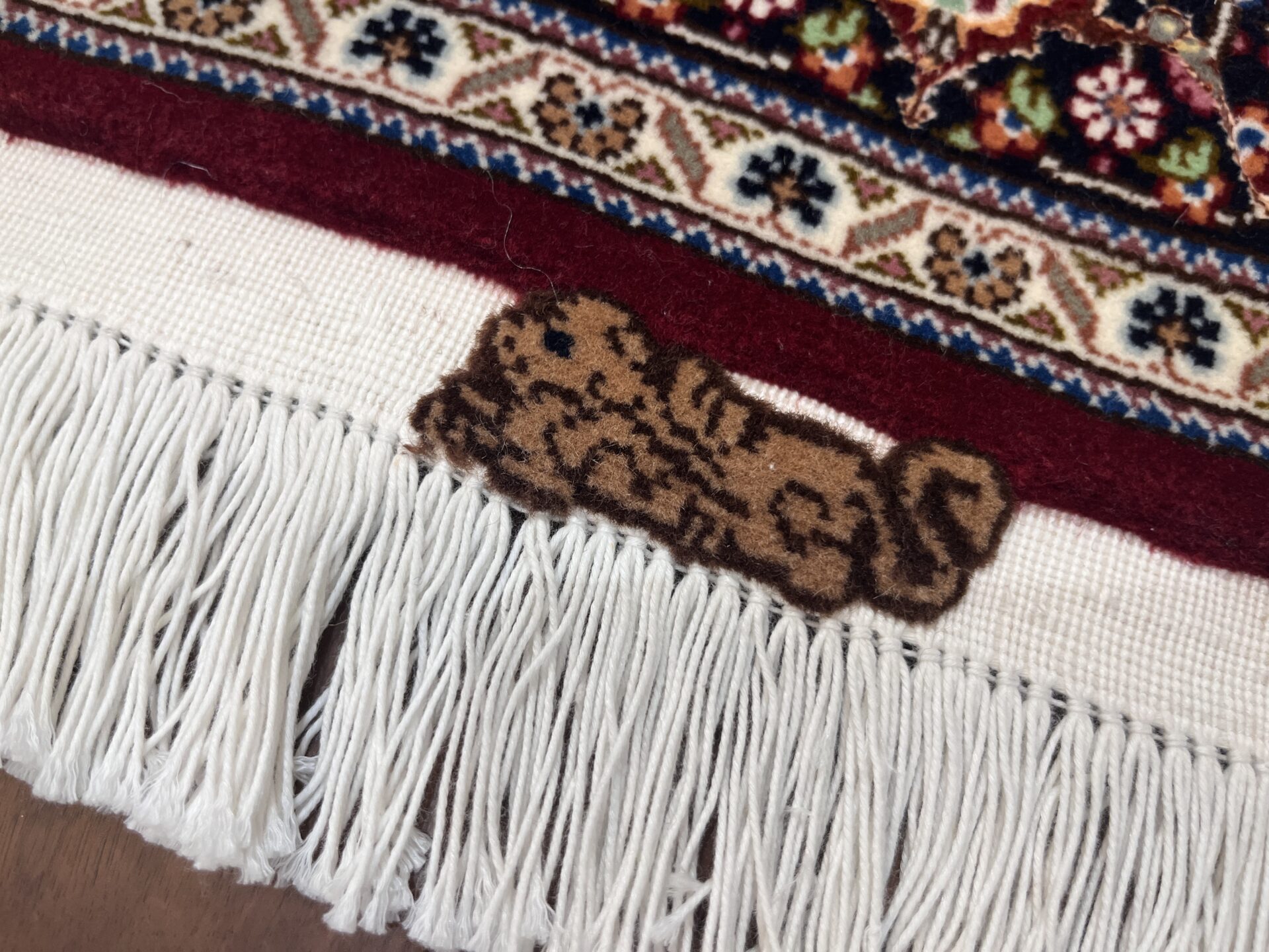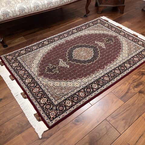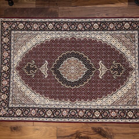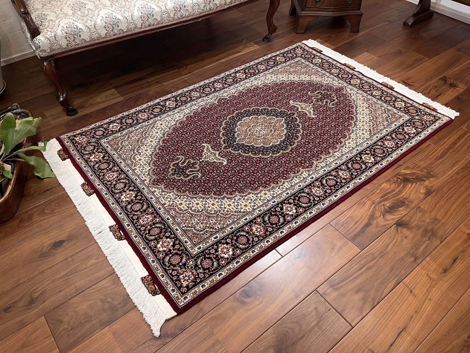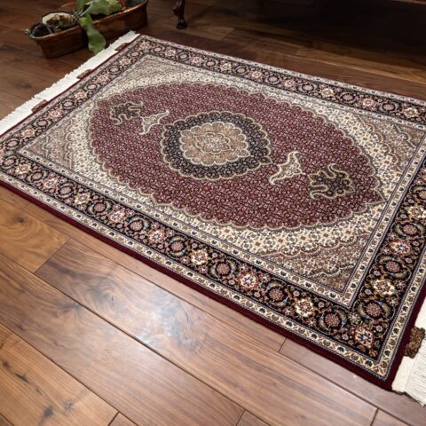 深みのあるワインレッドの地色に、精密な紋様が整然と刻まれた、タブリーズ産ならではの格調高い一枚をご紹介します。
