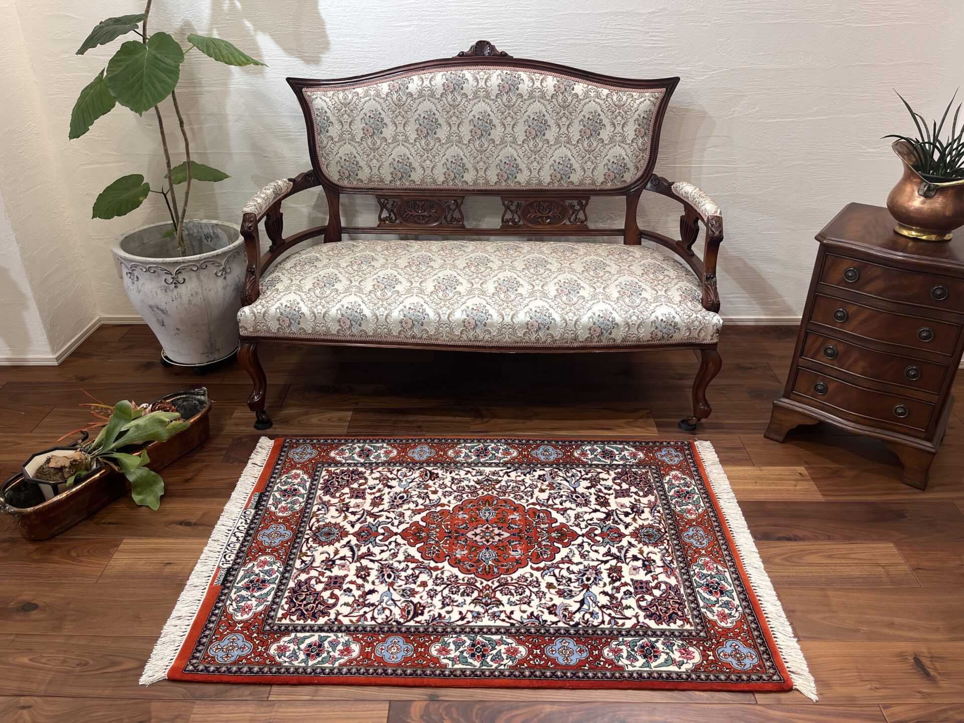 優美な曲線美と気品あふれる色彩が調和した、エスファハン産の芸術的な一枚をご紹介します。