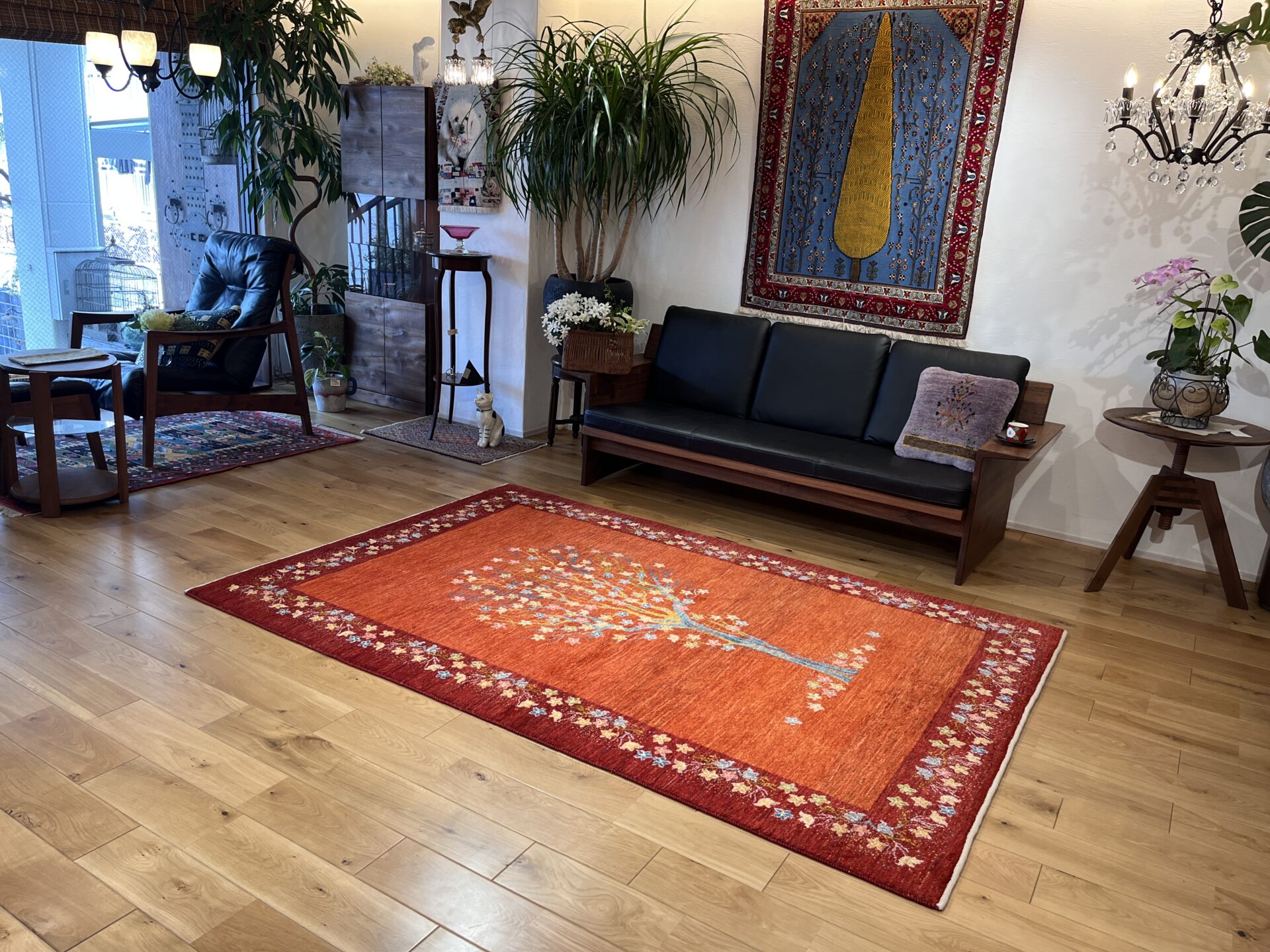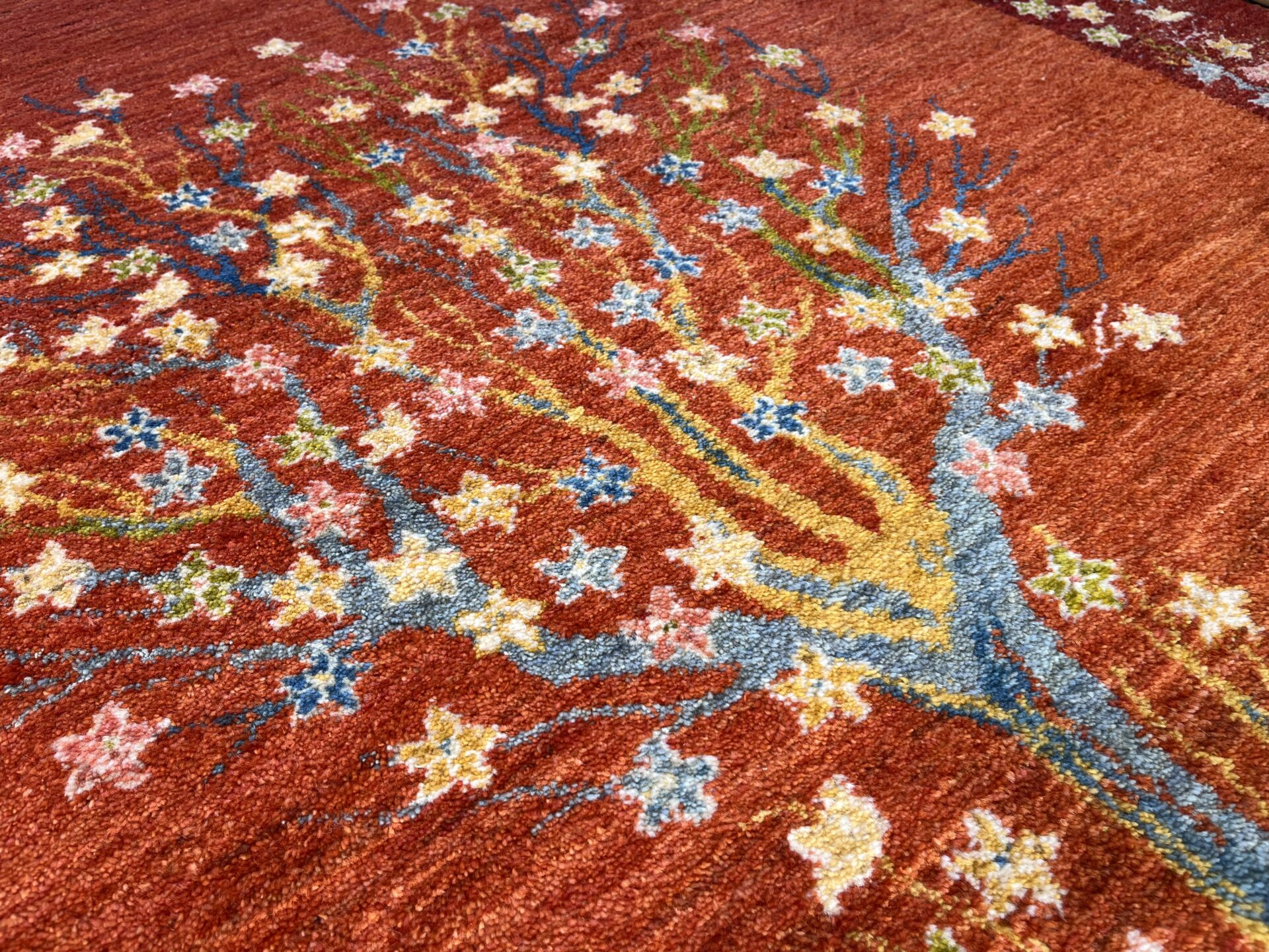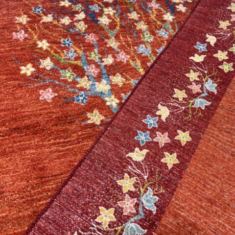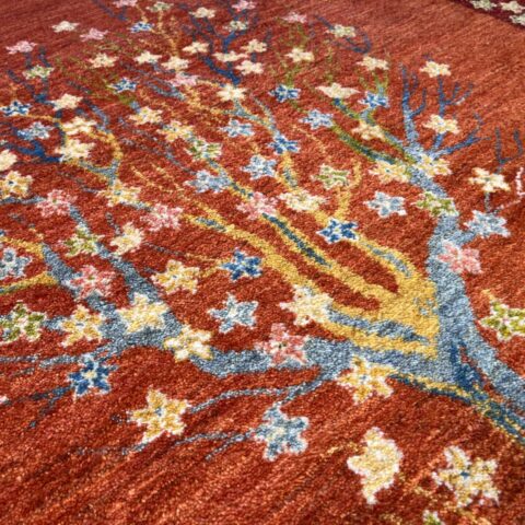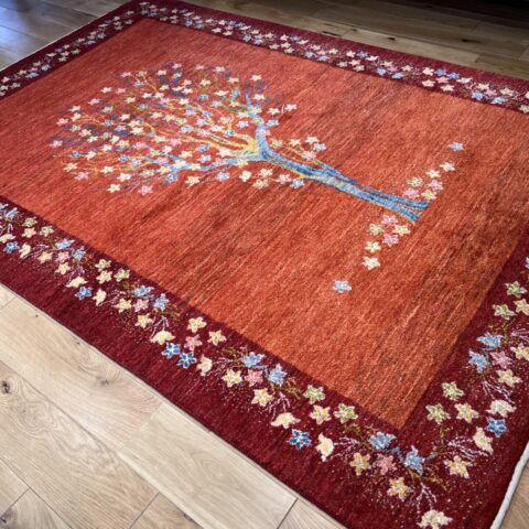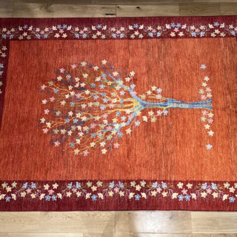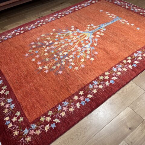 生命の木には【健康・長寿】【家内安全】の意味があり、ギャッベの中でもとても人気のデザインになっています。目が細かく織り密度が高く、触り心地も最高の1枚です。