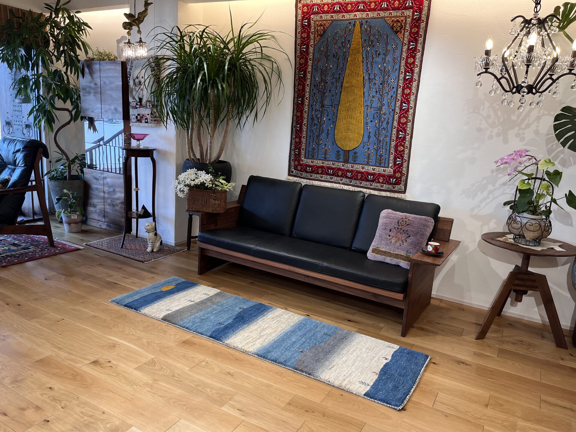 カシュクリ・ギャッベはアマレよりも細かな糸を使い、より緻密で滑らかな織りが特徴です。草木染めの色が美しく映え、模様の表現力も豊か。品質と軽やかさのバランスに優れ、使い心地と見た目の両方にこだわりたい方に最適な「カシュクリ ギャッベ」です。