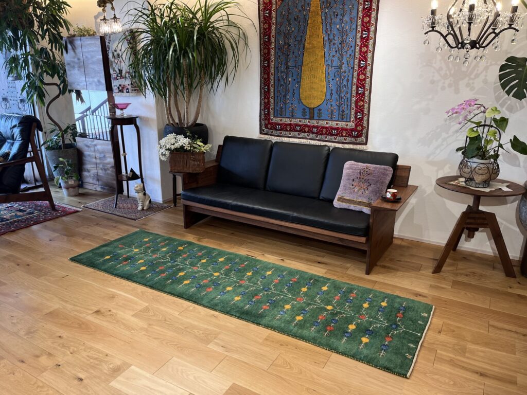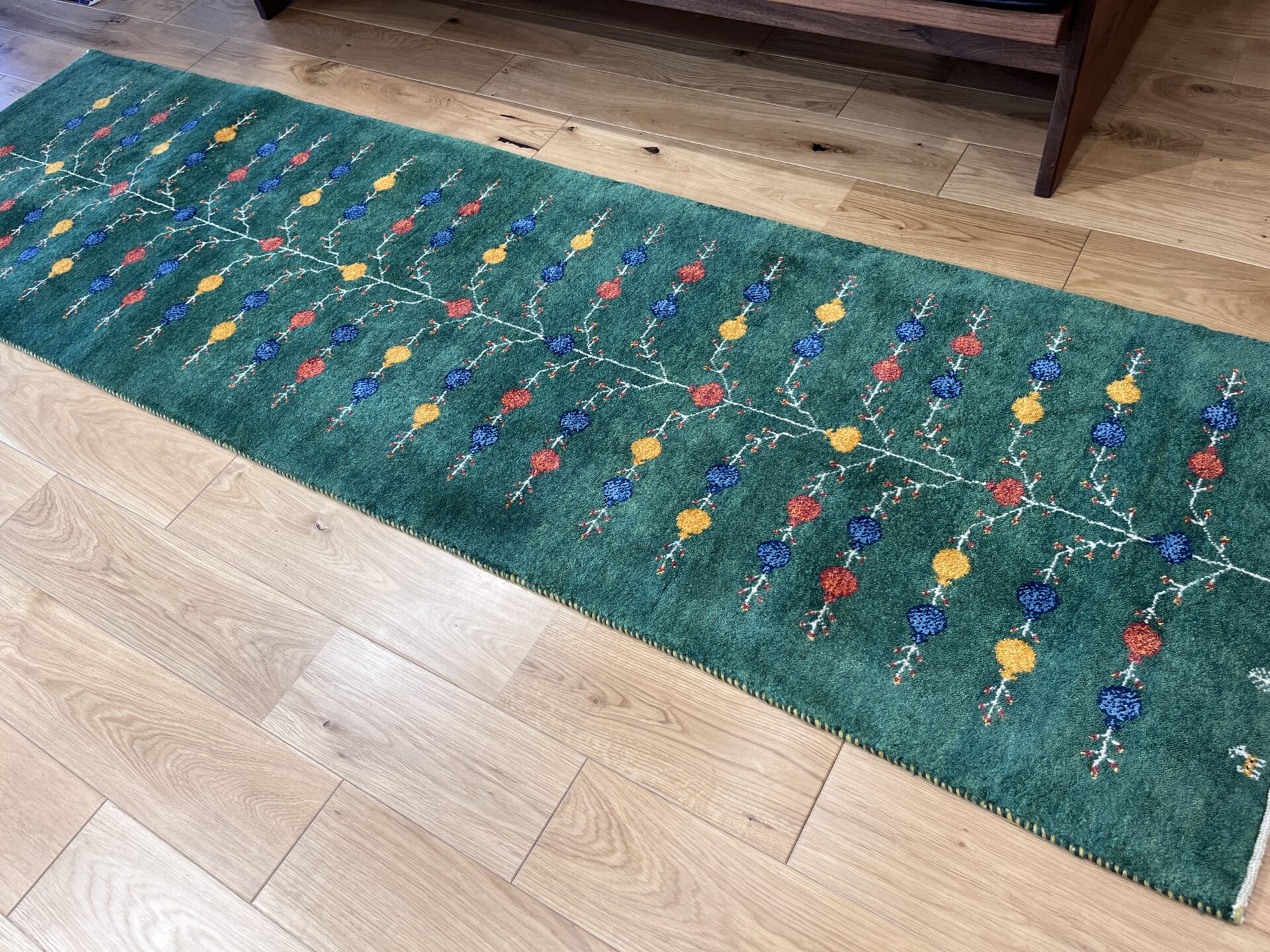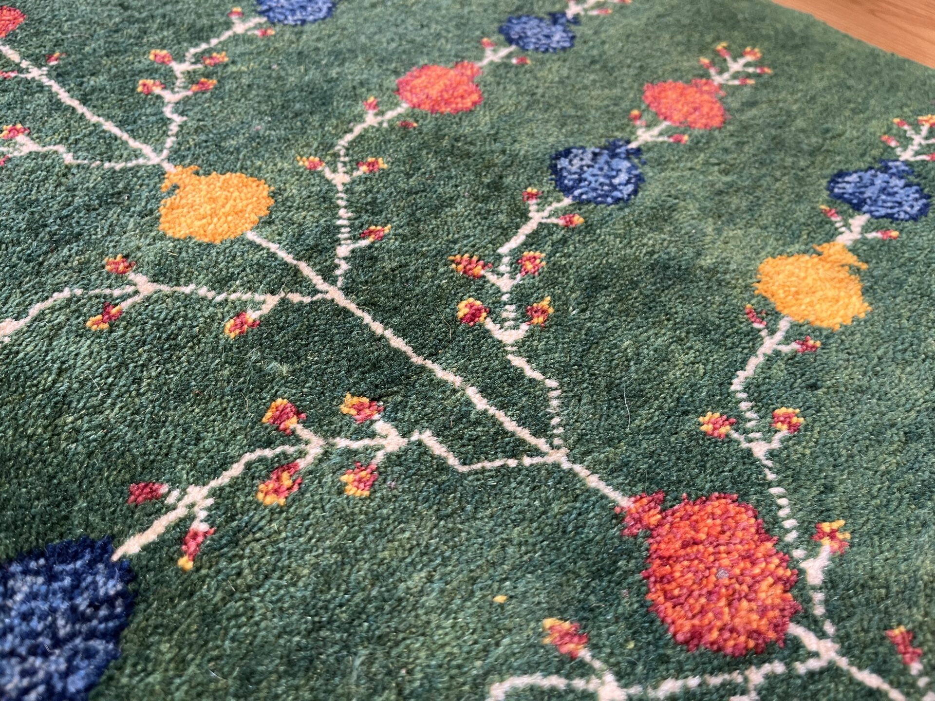 カシュクリ・ギャッベはアマレよりも細かな糸を使い、より緻密で滑らかな織りが特徴です。草木染めの色が美しく映え、模様の表現力も豊か。品質と軽やかさのバランスに優れ、使い心地と見た目の両方にこだわりたい方に最適な「カシュクリ ギャッベ」です。