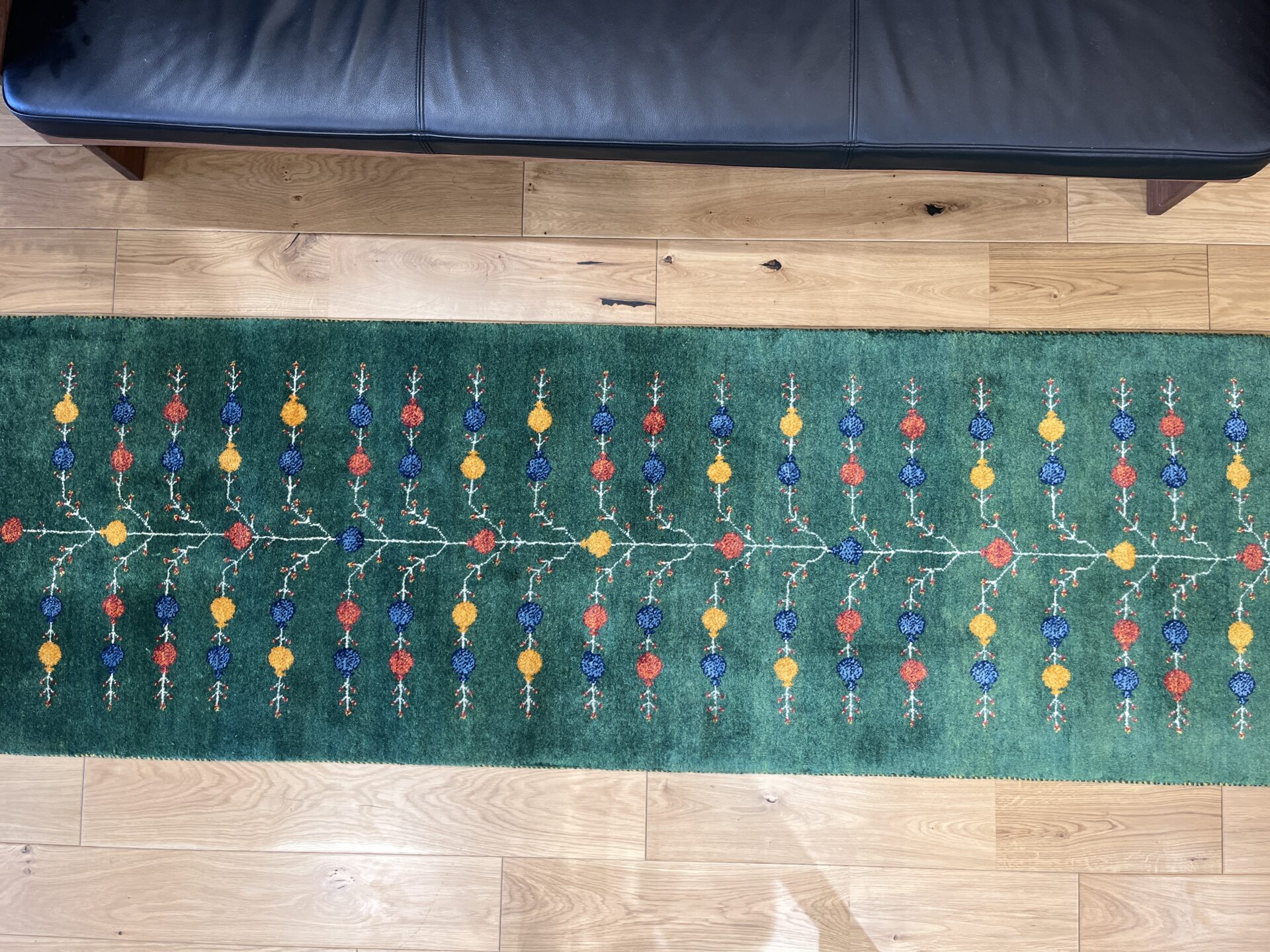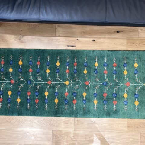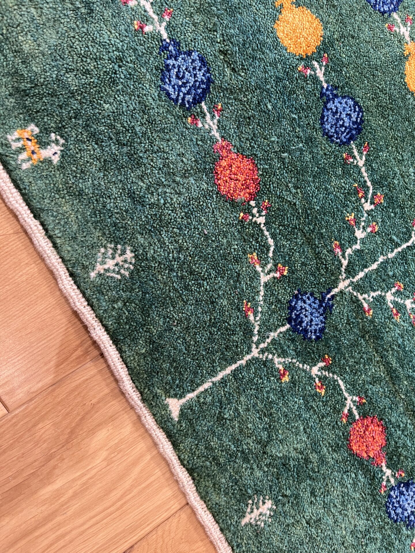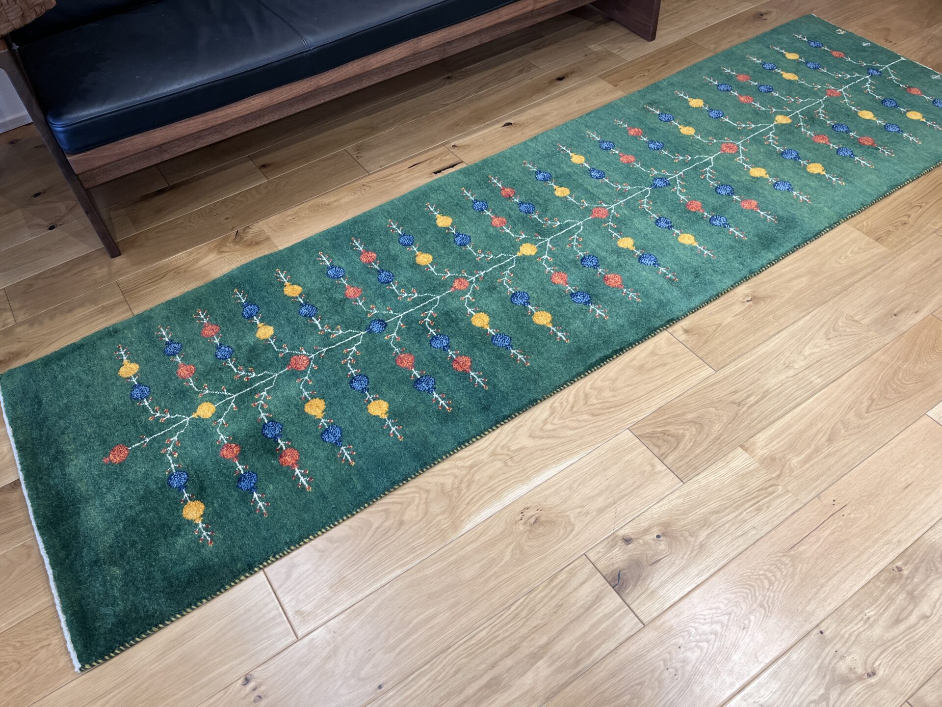 カシュクリ・ギャッベはアマレよりも細かな糸を使い、より緻密で滑らかな織りが特徴です。草木染めの色が美しく映え、模様の表現力も豊か。品質と軽やかさのバランスに優れ、使い心地と見た目の両方にこだわりたい方に最適な「カシュクリ ギャッベ」です。